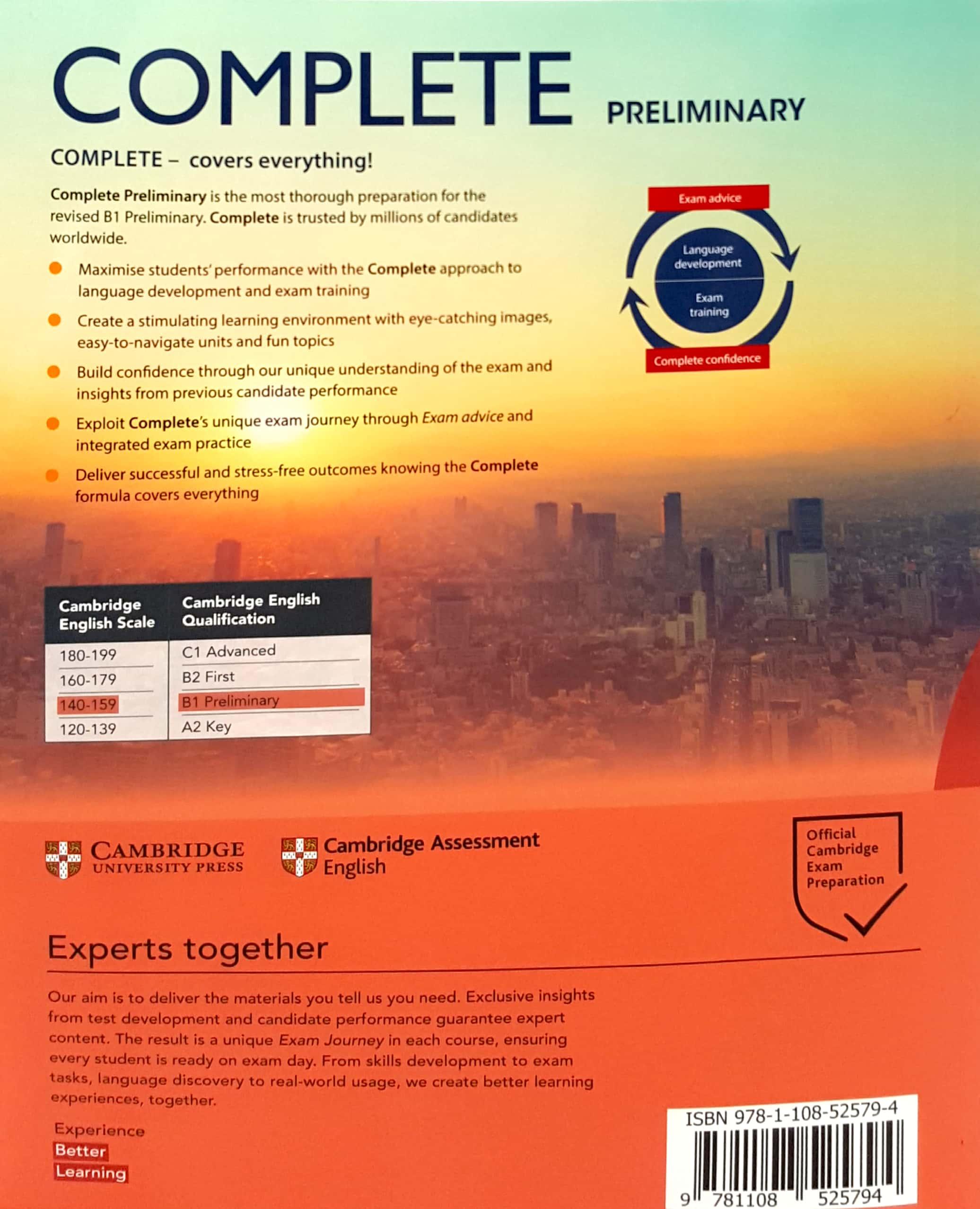 Complete Preliminary 2nd edition is the most thorough preparation for the revised B1 Preliminary. The Workbook with answers provides further practice of language and vocabulary introduced in the Student's Book. The downloadable Audio contains extra listening material for practice at home, including exam-style tasks.