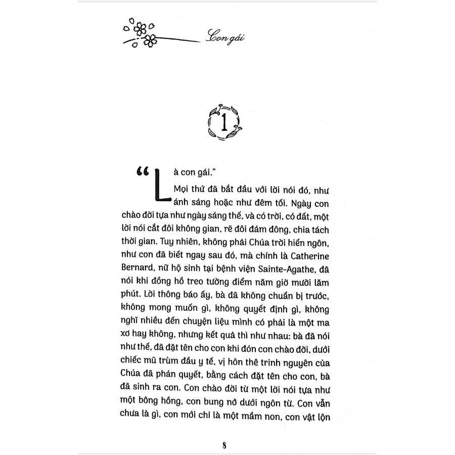 Nội dung: Camille Laurens được xem là một trong những “kiện tướng” của văn chương đương đại Pháp. Theo đuổi thể loại “giả tự truyện” (autofiction), mà bà thường gọi là “écriture de soi”, Camille Laurens đã viết nhiều truyện ngắn, tiểu thuyết suốt hơn hai thập kỷ qua. Và với Con gái - Fille, tài năng văn chương đã giúp bà miêu tả sắc sảo những khoảnh khắc thời tuổi thơ ảnh hưởng tới sự trưởng thành sau này, phân tích một cách tinh tế và rõ ràng về trải nghiệm của phụ nữ trong một xã hội phân biệt giới tính.