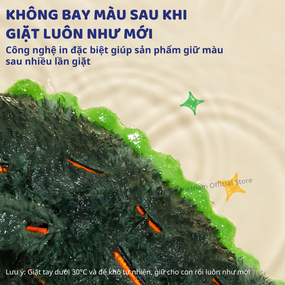 - KHÔNG BAY MÀU SAU KHI GIẶT, LUÔN NHƯ MỚI Với công nghệ in và nhuộm đặc biệt, sản phẩm giữ nguyên màu sắc tươi sáng sau nhiều lần giặt. Lưu ý: Giặt tay dưới 30°C và để khô tự nhiên, giữ cho con rối luôn như mới.