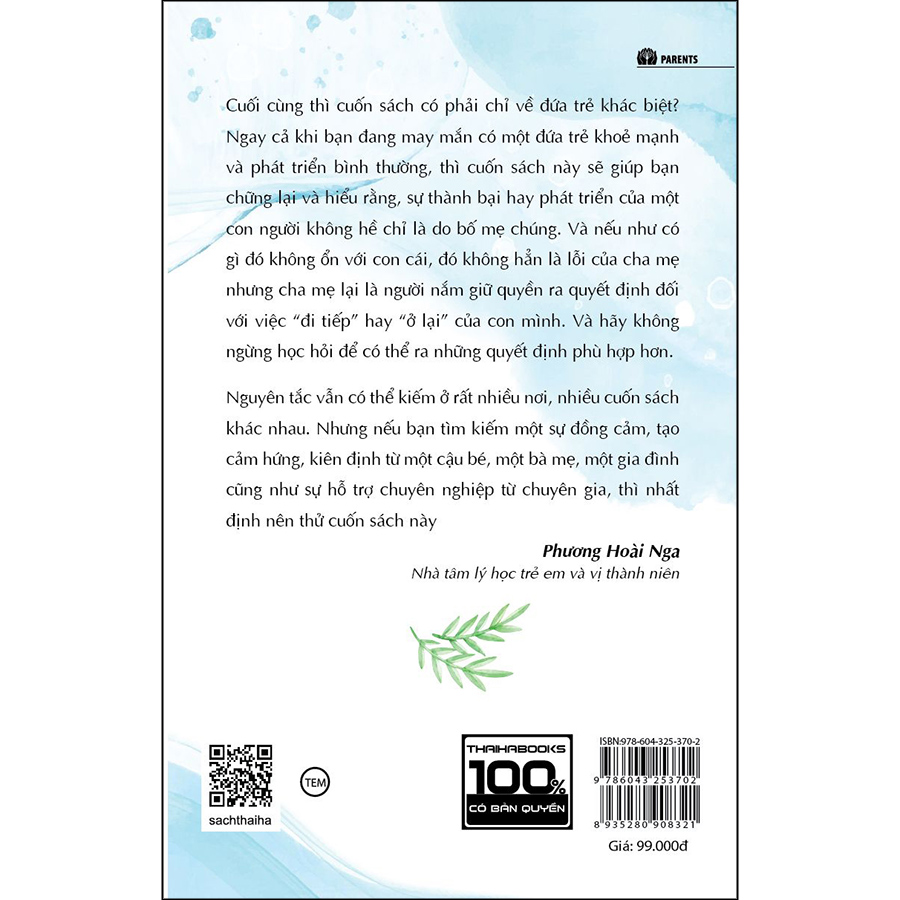 Nhưng câu chuyện này không chỉ của riêng Elaine hay Sam. Câu chuyện có khả năng sẽ định hình cuộc sống của nhiều gia đình khác và cũng có thể của chính bạn nữa. Nếu con bạn sinh ra đã khác biệt, bạn sẽ hiểu điều này. Đôi khi bạn còn tự hỏi làm sao có thể thực sự hiểu con khi mà có những lúc dường như không thể đến gần con. Cũng có thể do chưa biết xử lý cảm giác, giảm chú ý, hoặc lo âu thái quá mà con bạn nổi cơn thịnh nộ. Có thể con rất thông minh nhưng có kết quả học tập kém hoặc không chơi được với bạn bè. Có thể con là đứa trẻ luôn luôn gặp rắc rối ở trường. Có thể con luôn bồn chồn không yên, khó kiểm soát cảm xúc, trái ngược với bạn bè. Cũng có thể con mắc chứng khó đọc, tự kỷ chức năng cao hoặc rối loạn thách thức chống đối. Hoặc có thể con có tính khí quá mạnh hoặc quá nhạy cảm, nên rất khác biệt so với những đứa trẻ “dễ nuôi” hơn.