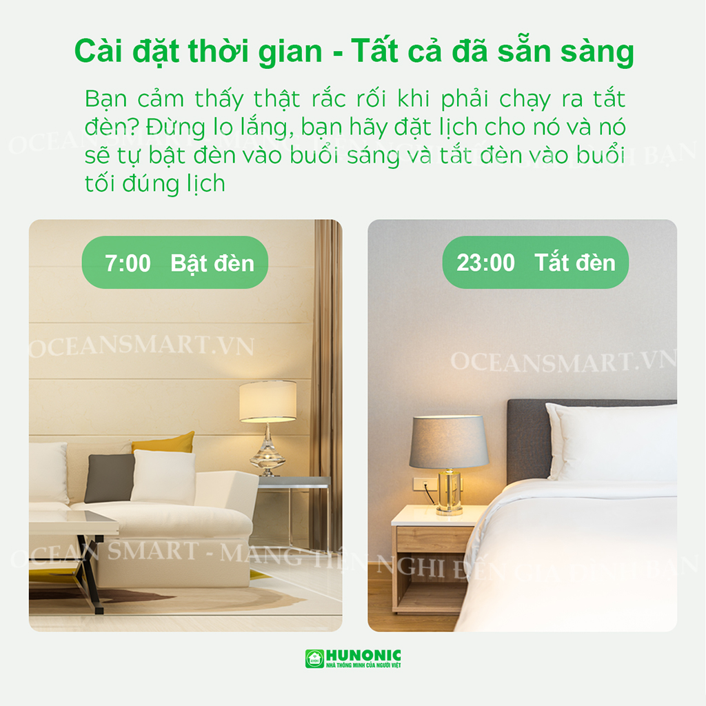 Công tắc Hunonic còn có khả năng hẹn giờ tự động bật, tự động tắt thông minh mà chúng ta không cần quan tâm đến thiết bị nữa.