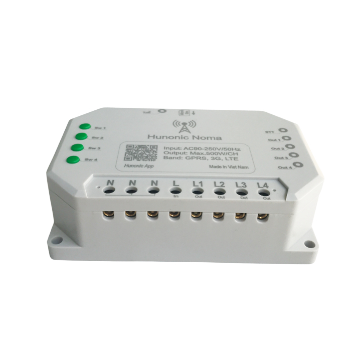 Mua tại TiktokCông Tắc Thông Minh Dùng Sim Hunonic Noma 4CH - 4 Kênh 500W/Kênh - Điều Khiển Từ Xa Bằng Điện Thoại - Công nghệ 4.0