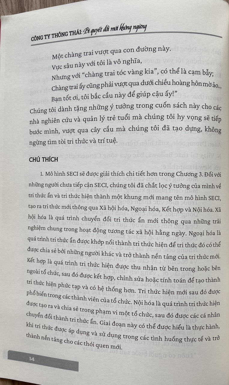 Trong "Công ty thông thái: Bí quyết đổi mới không ngừng", Ikujiro Nonaka và Hirotaka Takeuchi - các chuyên gia quản lý kỳ cựu sẽ bàn về sự cần thiết của trí tuệ, là tri thức ngầm bậc cao trước một thế giới đang thay đổi nhanh chóng.