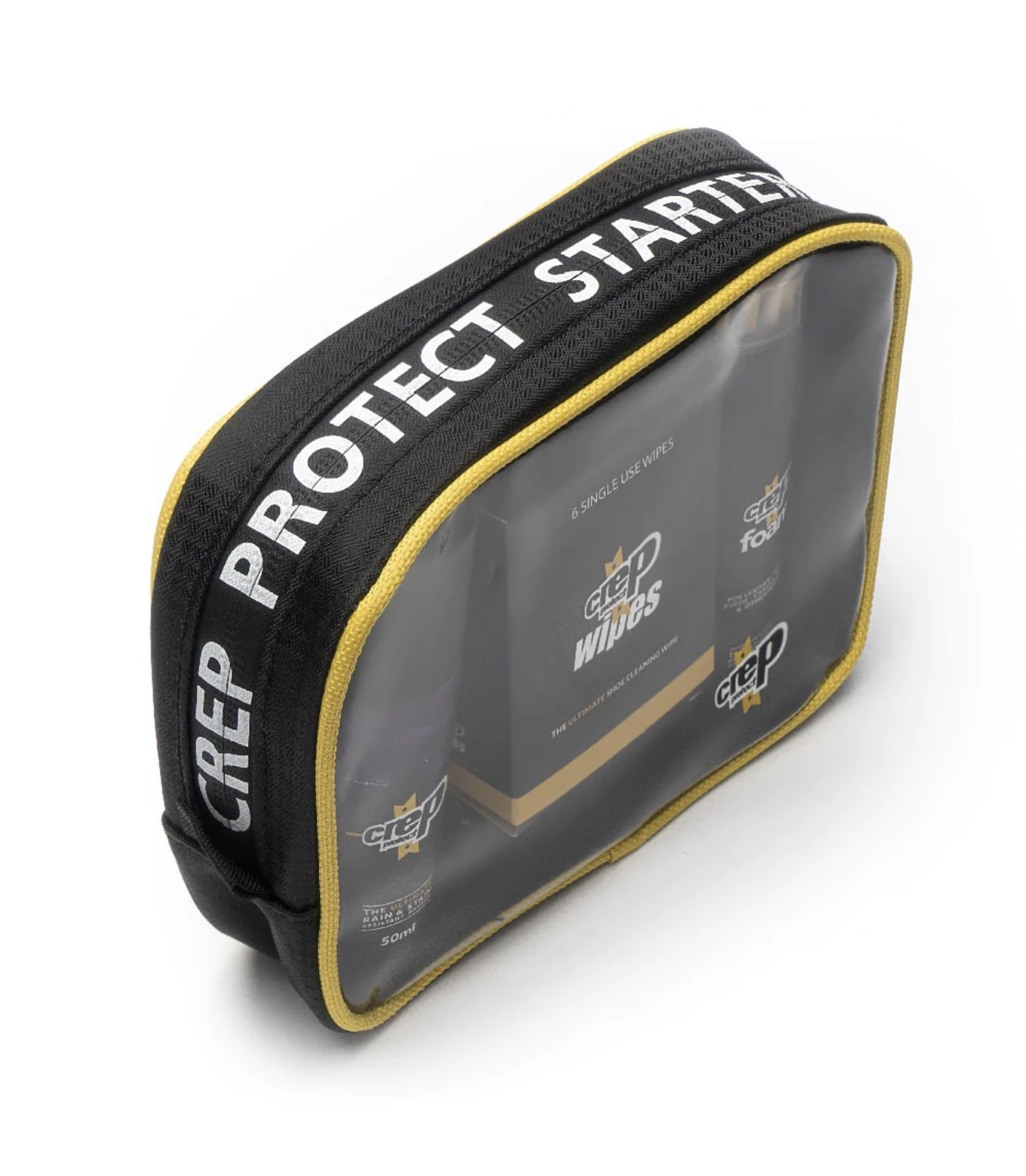 Bộ vệ sinh giày Crep Protect dành riêng cho đi du lịch Bao gồm Một bình xịt chống thấm nước nano Crep Protect Spray. Một chai xịt vệ sinh giày có đầu kết hợp bàn