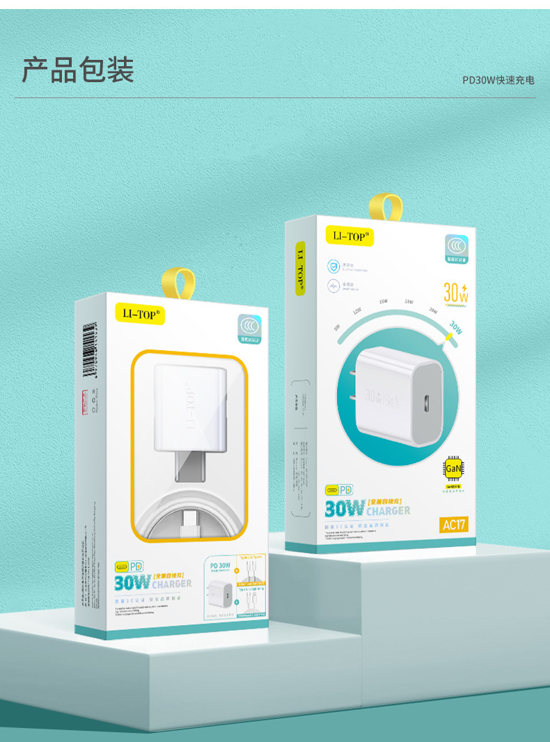 Củ sạc nhanh LI-TOP AC17 công suất PD 30W có chứng nhận 3C tiêu chuẩn quốc gia, hàng chính hãng, cho dùng thử 30 ngày hoàn trả