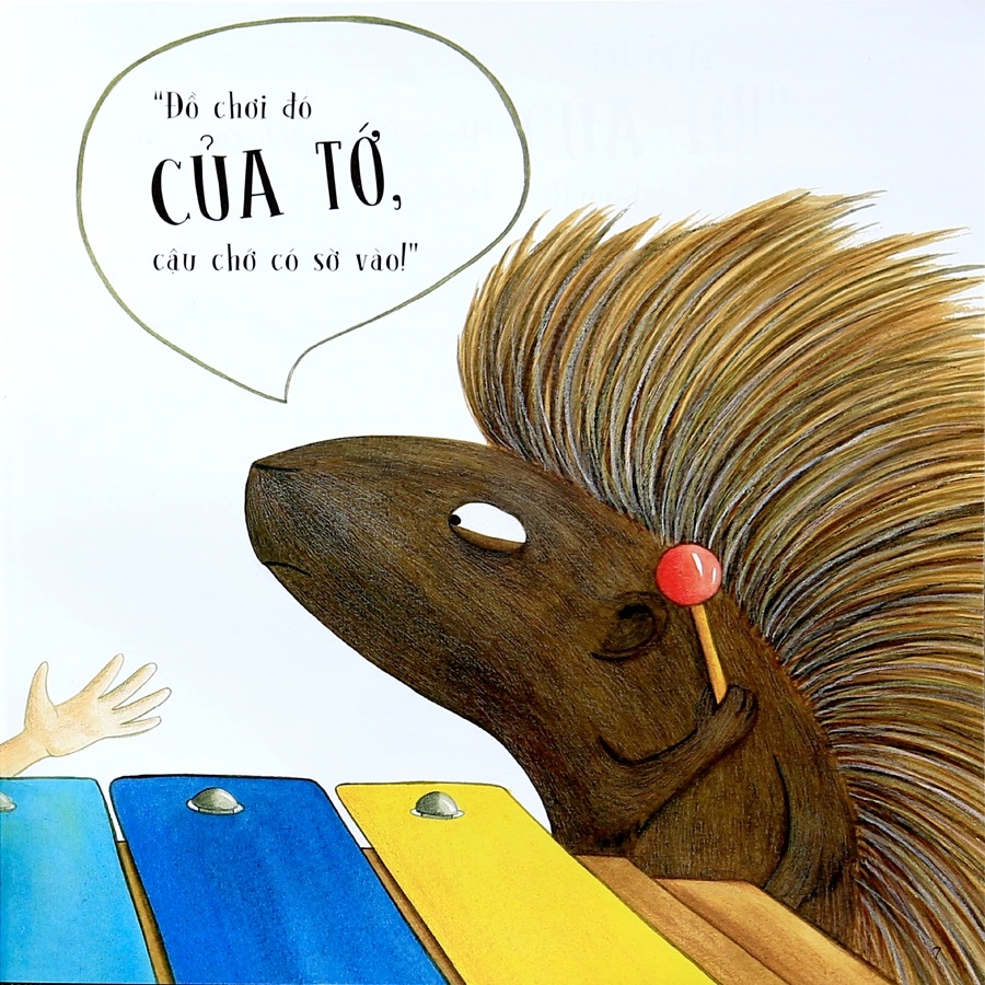 Hôm nay Nhím đến nhà Alfie. Alfie vui vẻ rủ Nhím chơi đồ chơi cùng mình. Nhưng hễ thấy đồ chơi của Alfie, Nhím liền bảo rằng: “CỦA TỚ!”, từ đàn mộc cầm, tàu vũ trụ, đến quả bóng, hay người má Nhím đã giành lấy mọi thứ của Alfie.
