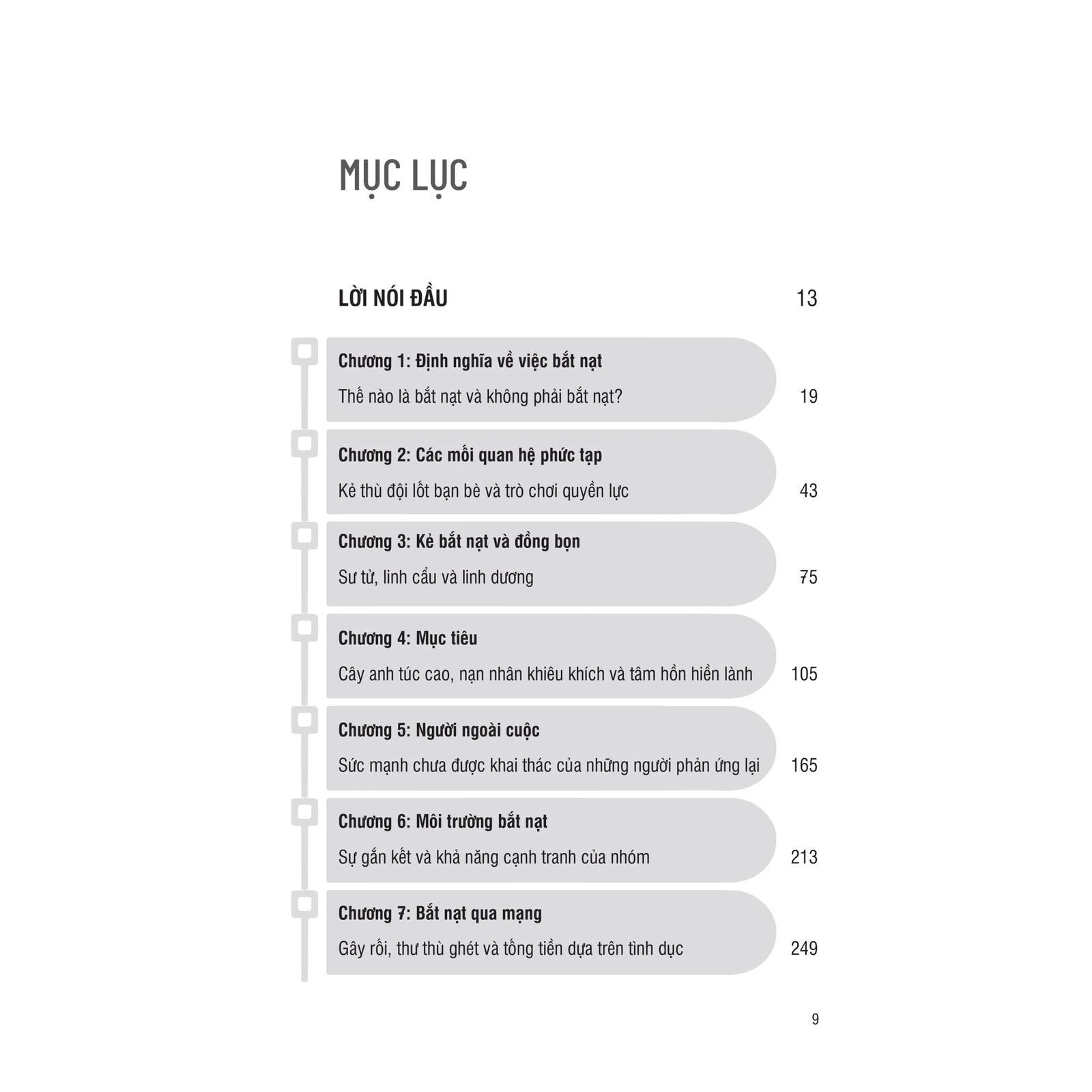 Cuốn sách Cùng Con Chống Nạn Bắt Nạn - Các công cụ thiết thực để bảo vệ và xây dựng sự mạnh mẽ cho con bạn. Cuốn sách khám phá thế giới đen tối của nạn bắt nạt, tất cả các lí do tại sao mọi người lại đi bắt nạt, tại sao một số cá tính lại cố gắng áp đạt quyền lực với bạn bè, tại sao một số người thường trở thành mục tiêu nhiều hơn những người khác và tại sao những người ngoài cuộc không can thiệp. Từ đó, tác giả đưa ra những phương pháp tiếp cận khác nhau để cha mẹ bảo vệ con, giúp con phục hồi sau trải nghiệm bị bắt nạt, đồng thời xây dựng sự tự tin, kiên cường và mạnh mẽ ở con.