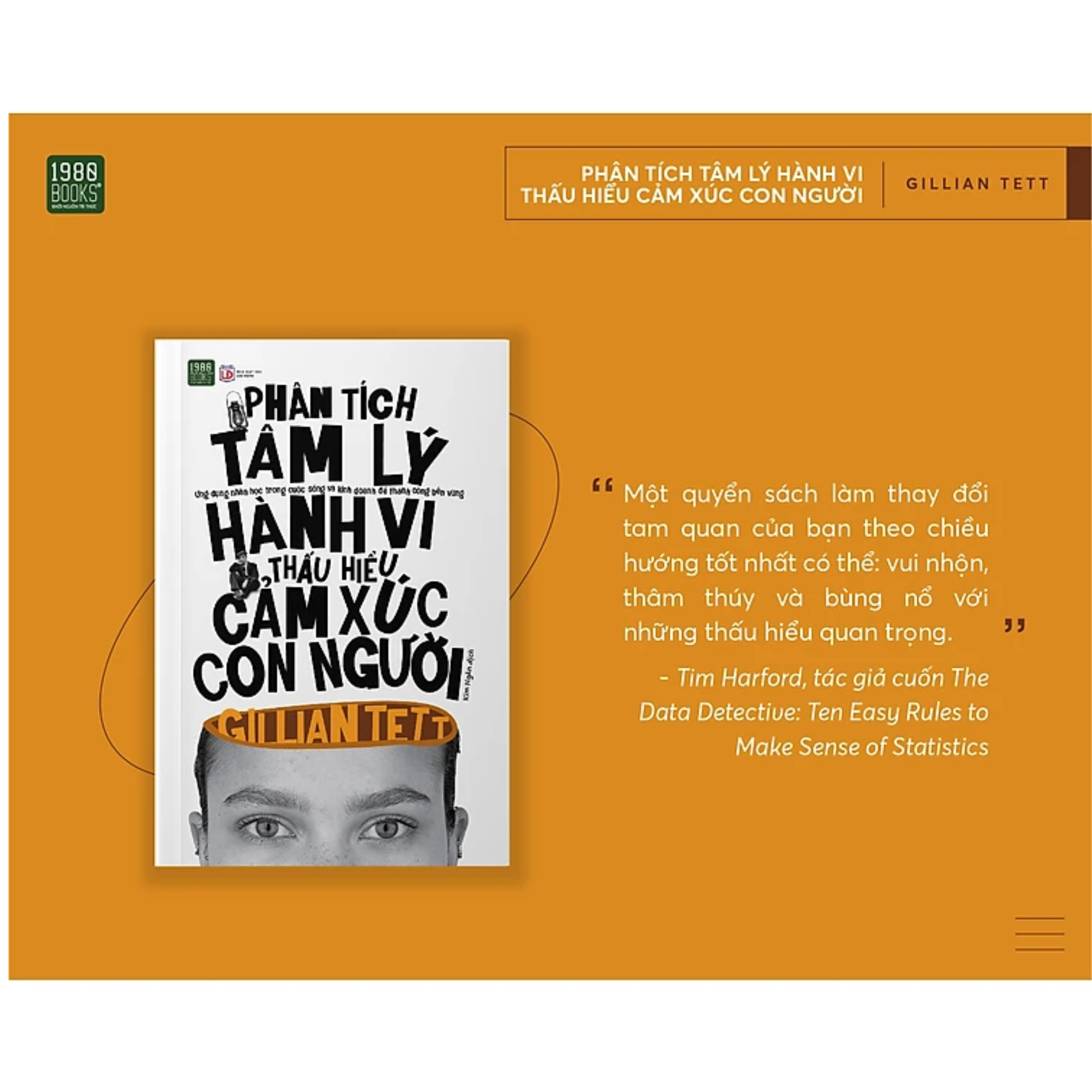 Phân Tích Tâm Lý Hành Vi, Thấu Hiểu Cảm Xúc Con Người Cuốn sách này cung cấp những ý tưởng bao quát về cách để có được một tầm nhìn nhân học, mang đến những câu chuyện thuộc nhiều chủ đề khác nhau, từ Covid-19 và Donald Trump cho đến lĩnh vực kỹ thuật số và điện thoại di động tuổi teen. Thế giới của chúng ta đang bị đảo lộn bởi sự toàn cầu hóa, chuyển đổi số, biến đổi khí hậu, bất ổn chính trị, đó là chưa kể đến những đại dịch đang chực chờ. Những cải tiến chẳng hạn như trí tuệ nhân tạo sẽ tăng cường thêm vào sự thay đổi này. Để có thể phát triển và tồn tại, chúng ta cần đến một dạng AI khác – đó chính là trí tuệ nhân loại học. Cuốn sách này sẽ chỉ ra cách để đạt được điều đó.