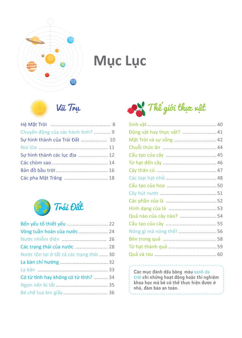 Trước hết, trẻ được bắt đầu khám phá về Trái Đất và Vũ trụ, một chuyến du hành trong không gian và thám hiểm Hệ Mặt Trời.