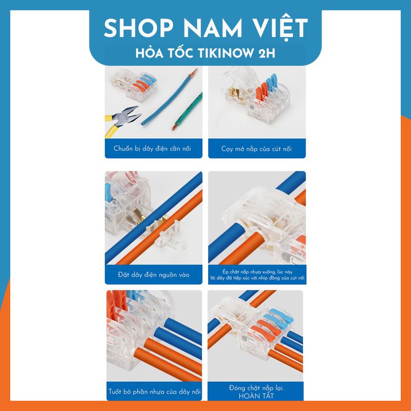 - Nối dây điện cực nhanh, không cần tuốt vỏ, không cần băng keo điện. - Giúp mối nối cách điện tốt, thẩm mỹ, có thể để lộ thiên, nhét gọn vào hộp âm tường,