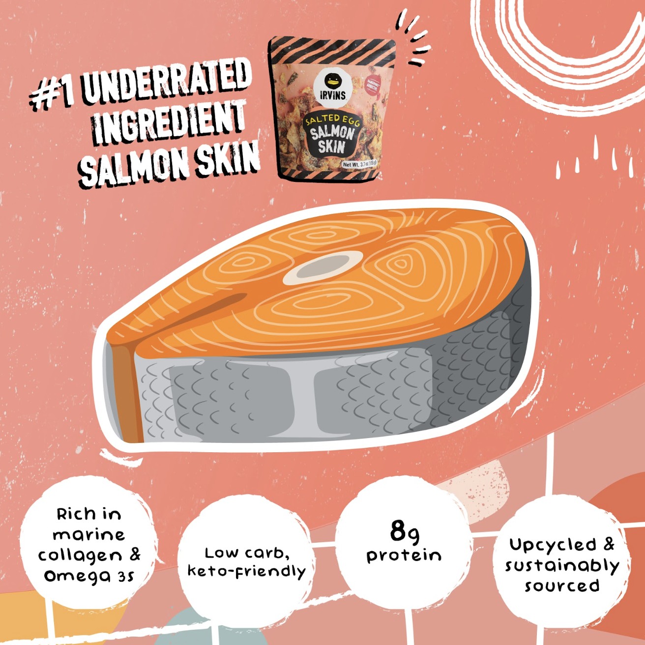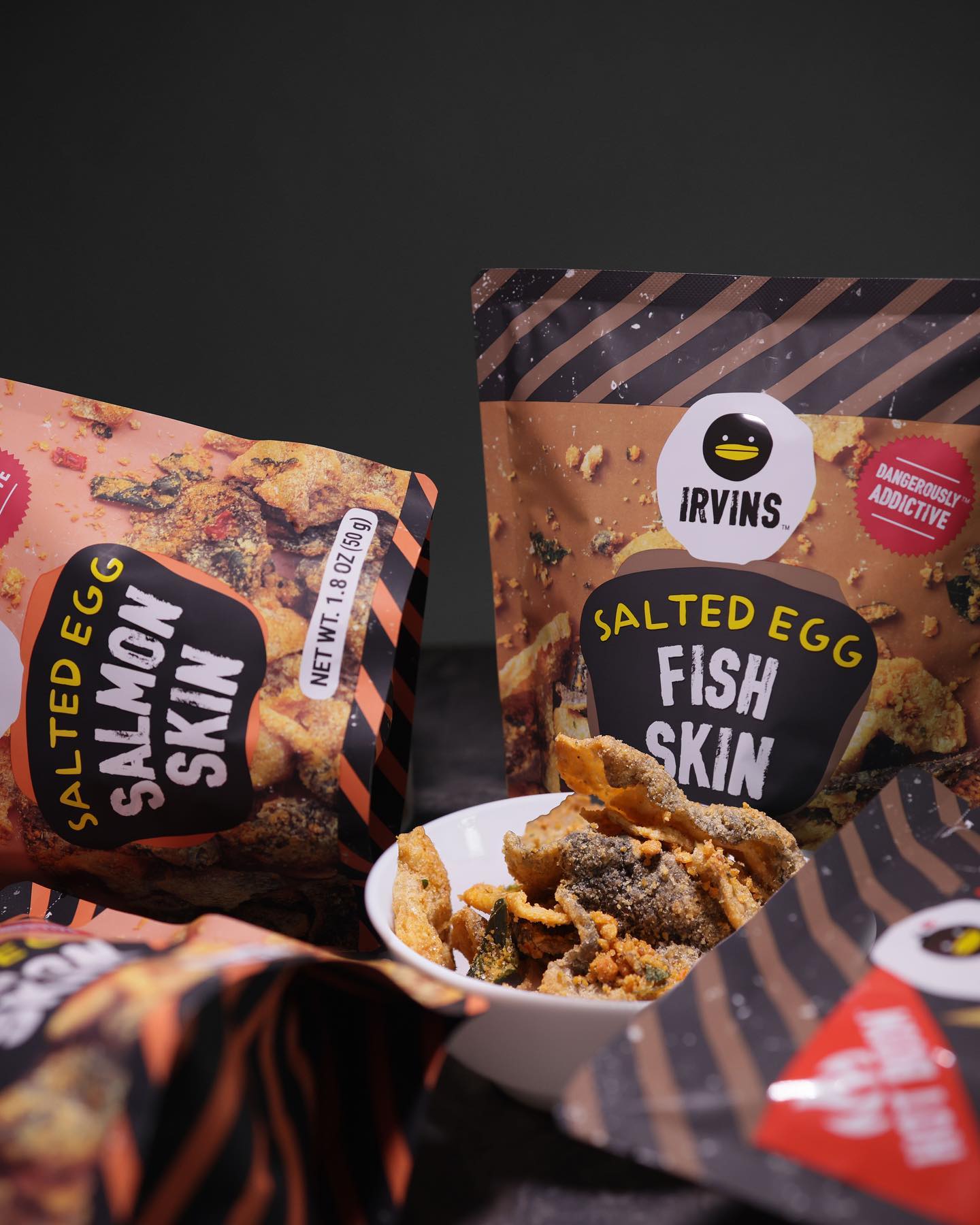 Nếu bạn đang cần tìm một chút mới lạ trong câu chuyện tình với IRVINS thì nắm tay bạn snack da cá hồi trứng muối này về nha. Da cá hồi thơm thơm, mang vị