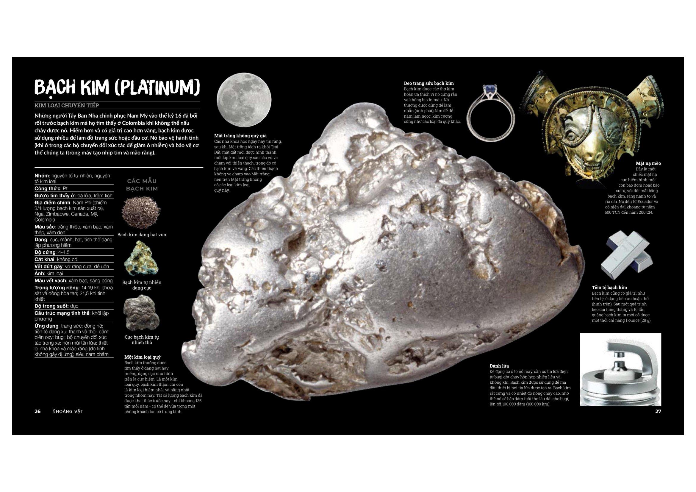 Trong cuốn sách này, tập trung tìm hiểu 3 chủ đề chính: KHOÁNG SẢN – ĐÁ – ĐÁ QUÝ, Mỗi chủ đề lại được phân tách và đi vào chi tiết của từng loại:KHOÁNG SẢN: Ở chủ đề này, các bạn sẽ được đi tham quan phòng trưng bày khoáng sản ( đồng/than chì/sắt/vàng/bạc…) Bạn sẽ biết chúng chính là phần còn lại của thiên thạch đến từ vùng không gian giữa các hành tinh bay vào khí quyển, bị cháy mất một phần và rơi xuống bề mặt Trái Đất. Ngoài ra, khám phá thông tin và các kiến thức bổ ích của 10+ khoáng chất khác, biết được khoáng vật tạo đá cấu thành nên 60% vỏ Trái Đất, nó gần như có mặt ở khắp mọi nơi trên vỏ Trái Đất hay tinh thể có cấu trúc tốt thường được dùng làm đá quý hay giả kim cương…