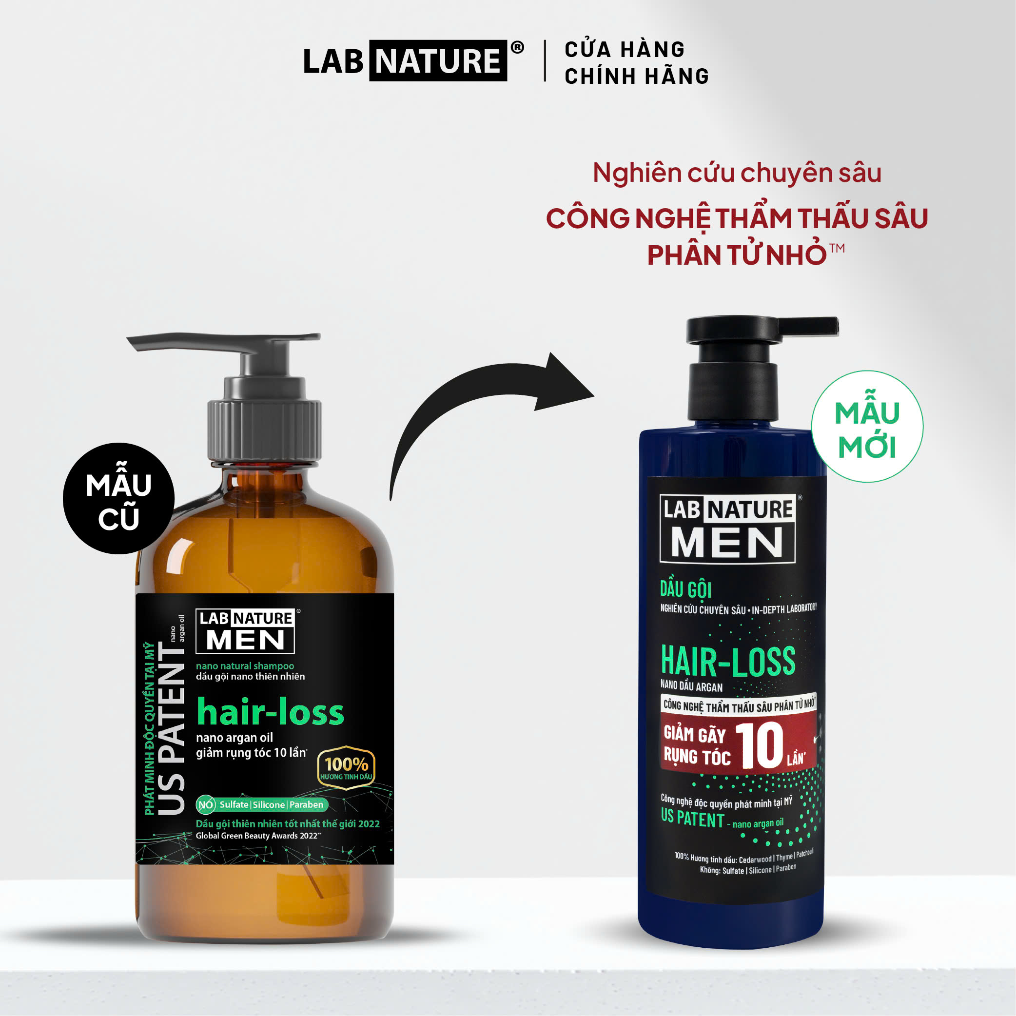 Dầu Gội Nano thiên nhiên Lab Nature Men Hair-loss dành riêng cho mái tóc Nam giới, đặc biệt cho mái tóc gãy rụng, mỏng yếu, khô xơ và hư tổn.