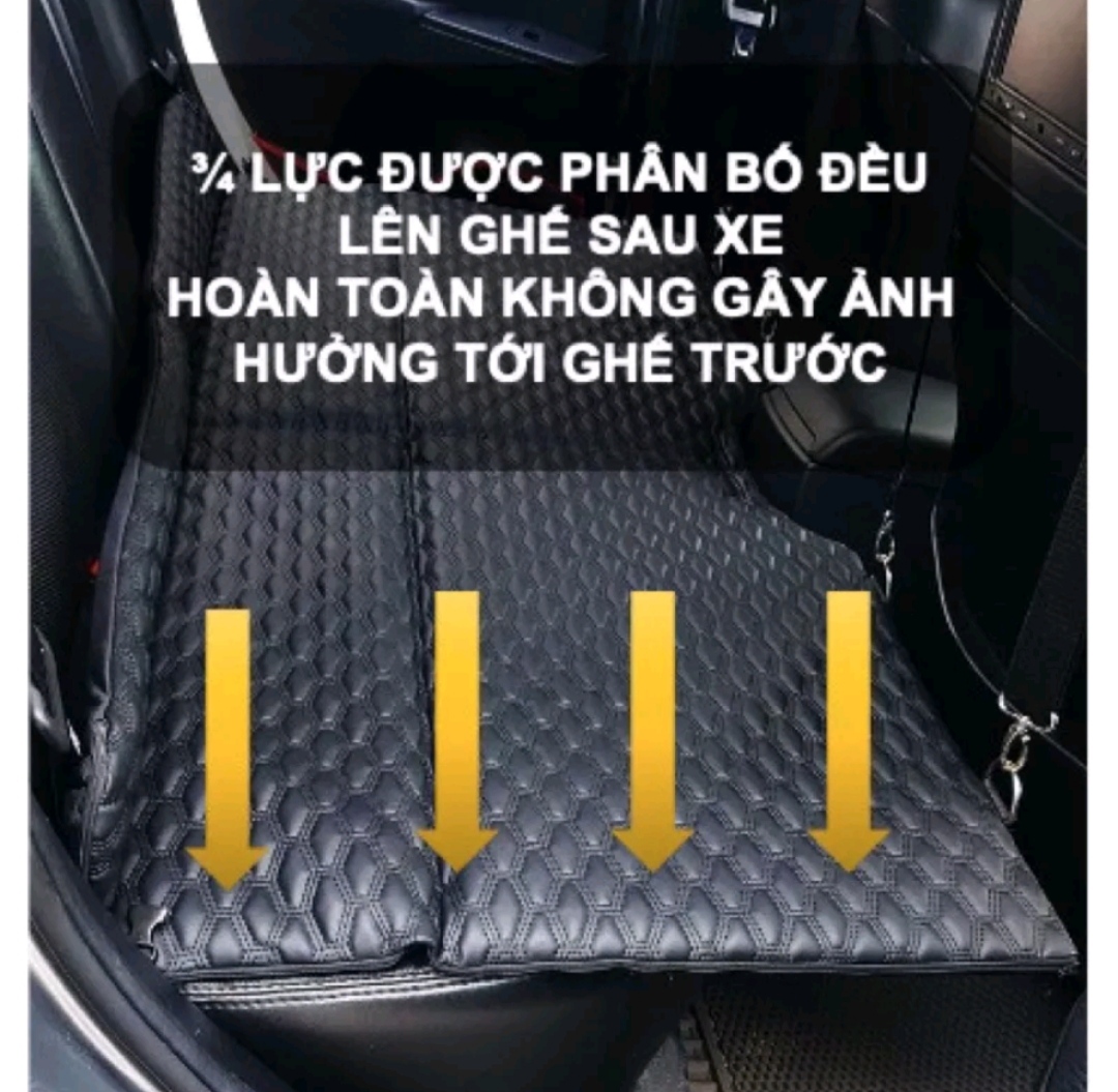 - Bảo hành 2 năm, nhận GIA CÔNG RIÊNG theo yêu cầu khách. CÁCH LẮP ĐẶT: - Trải nệm lên hàng ghế sau - treo 2 dây đai lên 2 ghế phía trước, thắt khóa điều chỉnh độ dài dây đai phù hợp với xe. Nệm là mặt phẳng được cố định chắc chắn, chịu lực 500kg. - Gấp gọn làm 4 khi không sử dụng. - Đặc điểm: Đệm ô tô ghế sau gấp gọn này chịu tải lên tới 500kg, không như các dòng nệm xe hơi ô tô khác, sản phẩm này sử dụng trực tiếp không cần bơm hơi, là một chiếc đệm ô tô ghế sau gấp gon thoải mái để trong cốp sau xe không tốn nhiều diện tích. - Thích hợp cho tất cả các dòng xe như một chiếc giường ngủ ô tô di động, đệm nằm sau xe ô tô tiện lợi LƯU Ý SỬ DỤNG: + Có thể làm đệm ô tô ghế sau như một chiếc giường ngủ ô tô ngả lưng êm ái, tạo ra không gian thoải mái cho trẻ nhỏ trên ô tô, giúp gia đình có một chuyến đi thoải mái, đặc biệt cần thiết trong những chuyến hành trình dài. + Có thể làm đệm để ngồi nghỉ khi đi dã ngoại, du lịch, tuy là đệm da nhưng sự êm ái không kém gì các loại nệm xe hơi ô tô thông thường. + Có khả năng chịu nước nhẹ, lau chùi dễ dàng, đệm nằm sau xe ô tô tiện dụng đa năng. - Đệm ô tô ghế sau được làm từ nhiều lớp vật liệu mềm, nhẹ, đàn hồi tốt, chịu được trọng lượng lớn, được bọc lớp mặt giả da siêu mịn tạo cảm giác vô cùng êm ái, dễ chịu. Nệm xe hơi loại cao cấp - Hơn hẳn các loại đệm hơi ô tô khác, chất lượng chiếc giường ngủ ô tô này cực kì đảm bảo, giá gốc cạnh tranh.