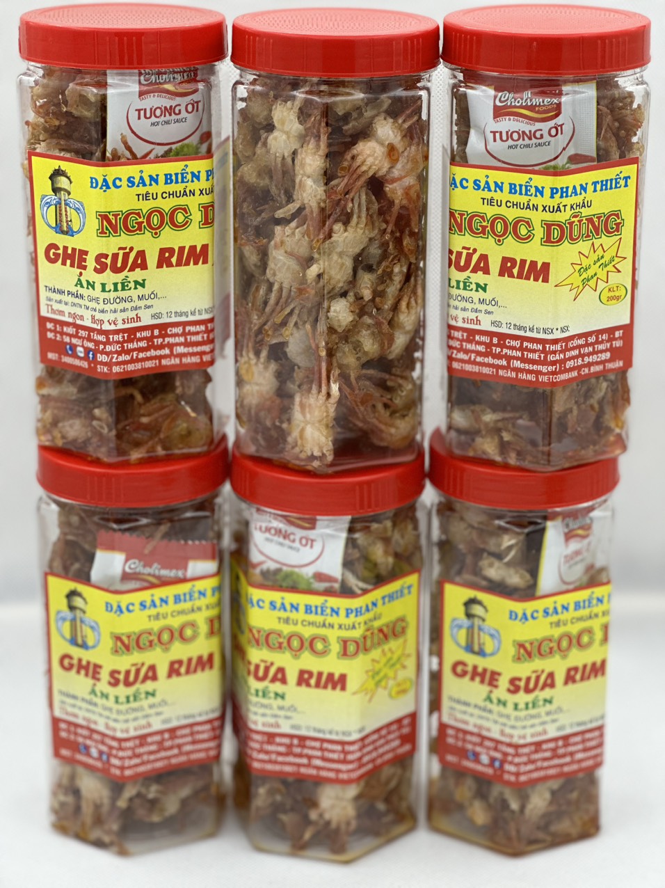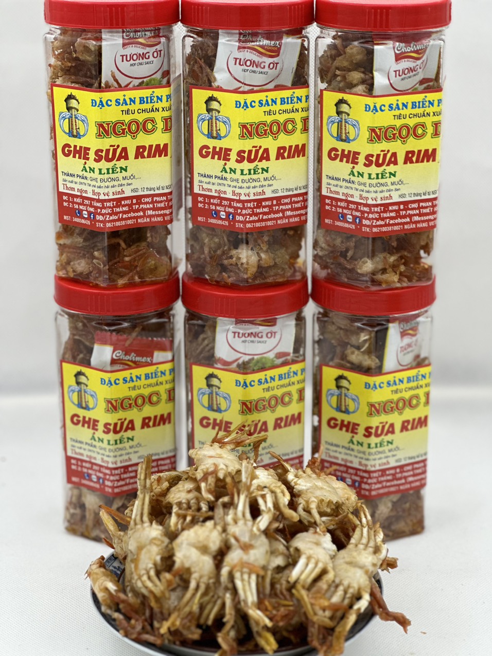 - Ghẹ sữa rim đã chế biến ăn liền ngon ơi là ngon của shop Đặc Sản Biển Phan Thiết NGỌC DŨNG được bán trên các sàn thương mại điện tử; Chợ lớn Phan Thiết và các điểm dừng chân khi khách hàng đi du lịch Phan Thiết Mũi Né mua để ăn vật và mua làm quà biếu cho người thân, bạn bè, đồng nghiệ