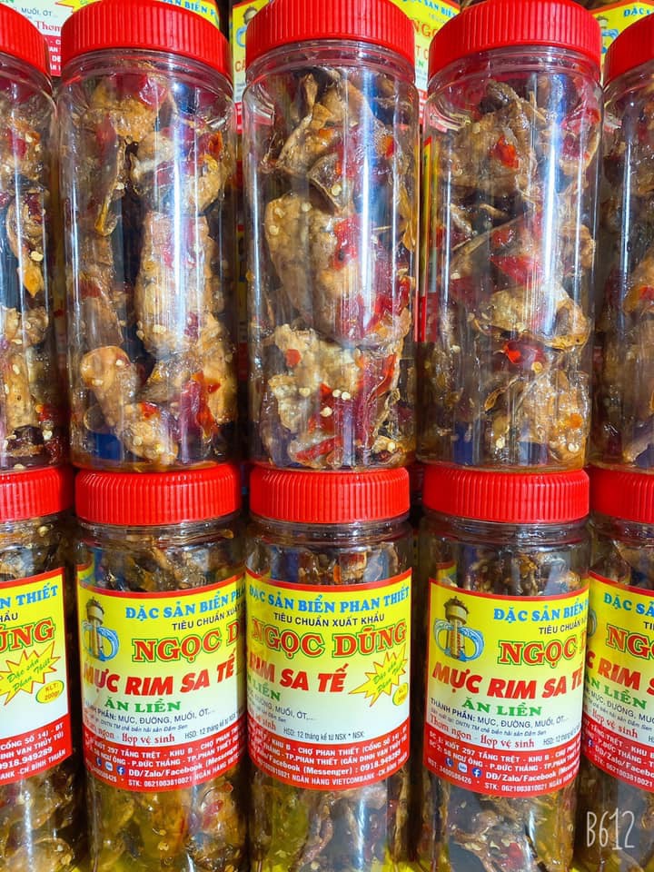 Mực rim sa tế ( ăn liền ) hộp 200 gram là sản phẩm trải nghiệm được chế biến từ mực ống hay mực lá còn tươi xanh tại Cảng cá Phan Thiết tỉnh Bình Thuận là món ăn ngon của Shop Đặc Sản Biển Phan Thiết NGỌC DŨNG.