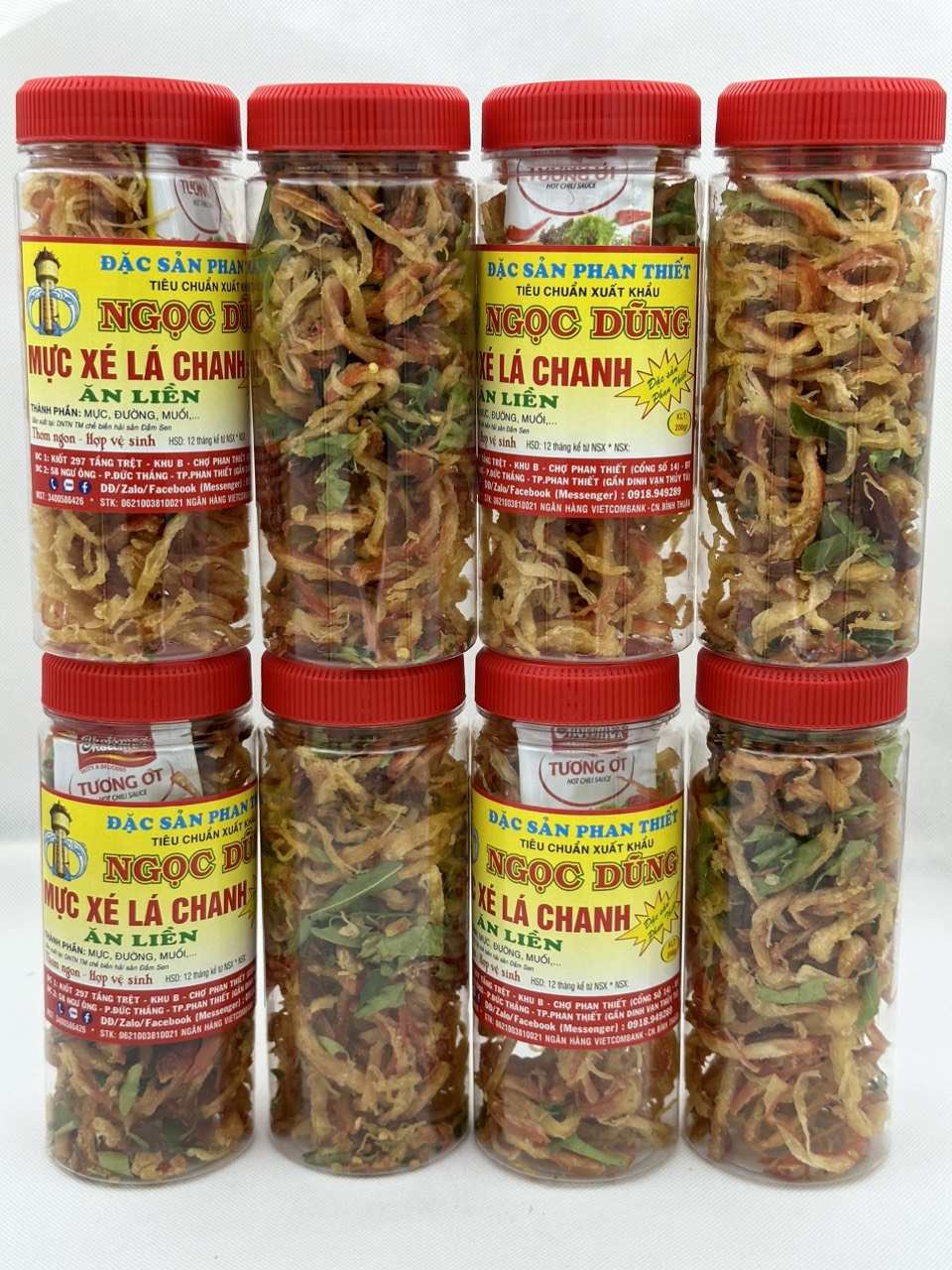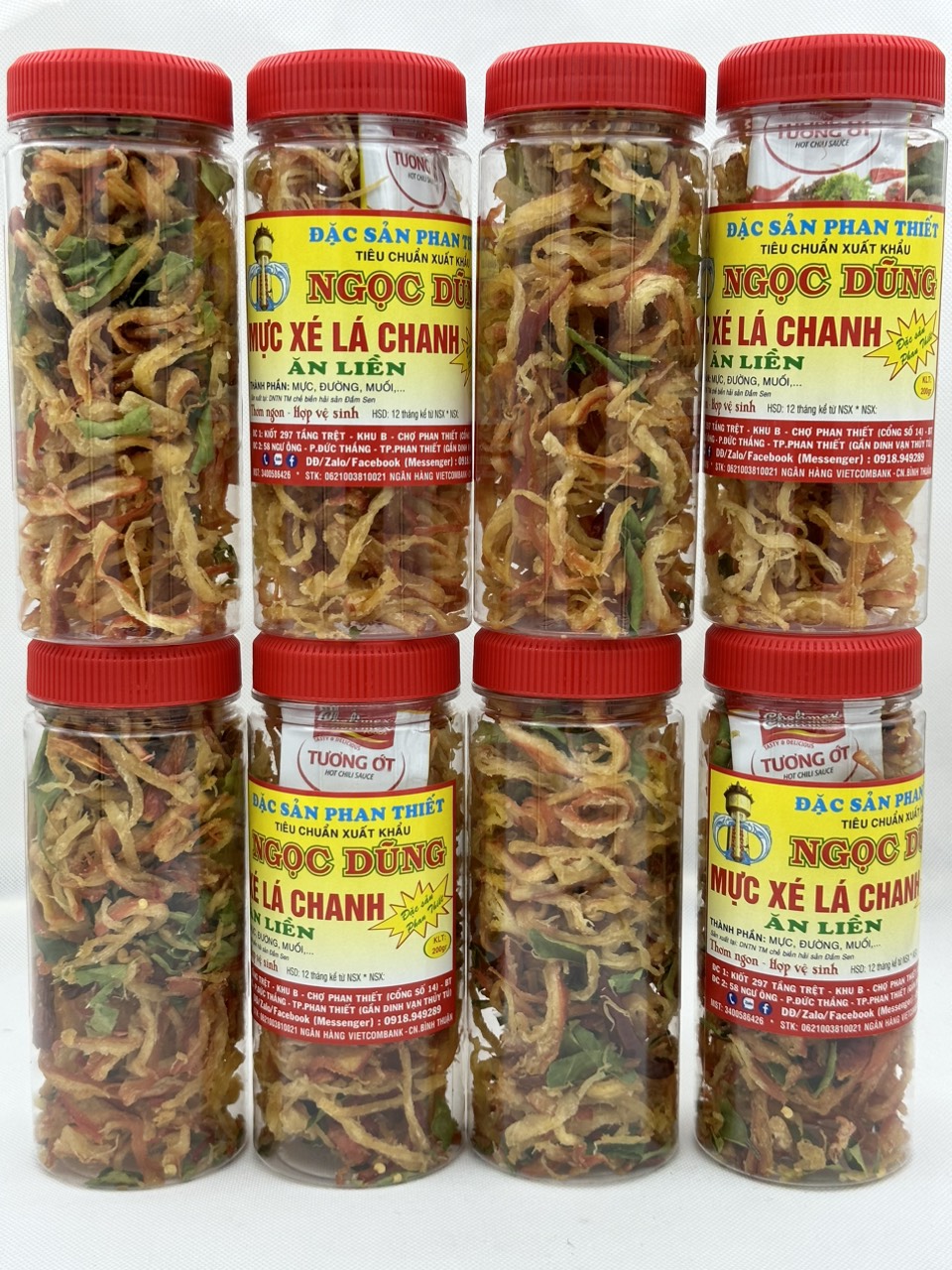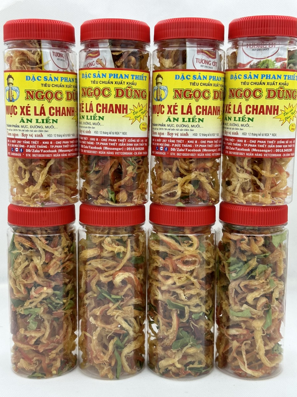 - Mực xé lá chanh đã chế biến ăn liền ngon ơi là ngon của shop Đặc Sản Biển Phan Thiết NGỌC DŨNG được bán trên các sàn thương mại điện tử; Chợ lớn Phan Thiết và các điểm dừng chân khi khách hàng đi du lịch Phan Thiết Mũi Né mua để ăn vật và mua làm quà biếu cho người thân, bạn bè, đồng nghiệ