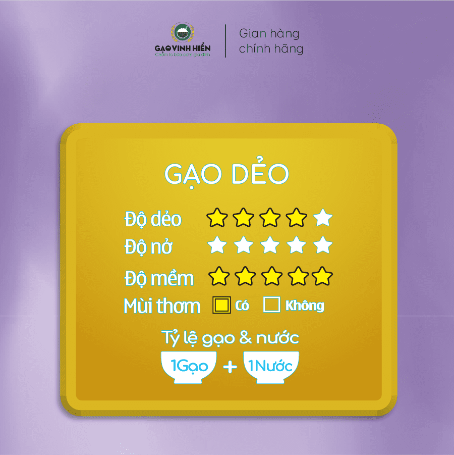 Khối lượng tịnh: 5kg Xuất sứ: Sóc Trăng, Việt Nam Ngày sản xuất: Xem trên bao bì Hạn sử dụng: 6 tháng kể từ ngày sản xuất Đóng gói: Túi 5Kg Thương hiệu: Gạo