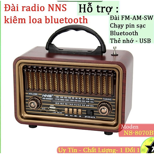 Mua tại TiktokA. GIỚI THIỆU VỀ SẢN PHẨM Đài Radio NNS 8070BT - không yêu cầu kỹ năng công nghệ cao. Bạn chỉ cần bật nó lên và điều chỉnh đến đài phát thanh yêu thích của mình. Đây là một tính năng đặc biệt hữu ích đối với những người không quen với việc sử dụng các thiết bị điện tử phức tạp. Đài Radio - Phương tiện truyền thông kết nối và kỷ niệm quan trọng trong cuộc sống Đặc biệt: Sẽ có tất cả các bài hát yêu thích, chương trình thân quen bắt sóng FM - AM - SW cực khỏe, nghe nhạc thẻ nhớ, USB, kết nối Bluetooth điện thoại dễ dàng. B. TÍNH NĂNG SẢN PHẨM