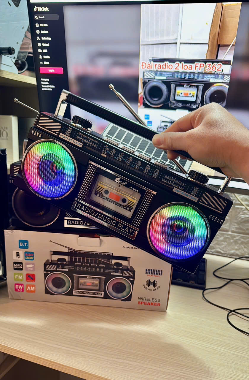 - Chắc hẳn trong mỗi người dân Việt Nam chúng ta ai cũng có những kỷ niệm về chiếc ĐÀI RADIO đây là một lừa chọn hoàn hảo nhất cho chúng ta. .Đài radio FP-362S 2 LOA :đa dạng với nhiều màu sắc Đa dạng với 3 màu sắc:VÀNG -NÂU - ĐEN không chỉ có một màu sắc duy nhất, mà bạn có thể lựa chọn từ 3 tùy chọn khác nhau. Điều này tạo ra sự phong phú và sẽ đáp ứng nhu cầu cá nhân của bạn. Bất kể bạn yêu thích sắc VÀNG nổi bật, hay màu đen sang trọng hoặc màu NÂU trang nhã, đài radio FP-362S sẽ là món đồ nội thất lý tưởng cho không gian của bạn. -Thiết kế ĐẸP tiện lợi: Với kích thước31X10X14 , đài radio đa năng dễ dàng di chuyển và đặt ở bất kỳ vị trí nào trong nhà bạn. Không chiếm quá nhiều không gian, bạn có thể dễ dàng đặt nó trên bàn làm việc, kệ sách, hoặc trên kệ trang trí. -Hiệu suất âm thanh tuyệt vời: Đừng để kích thước làm bạn nhầm lẫn. mang lại hiệu suất âm thanh tốt vượt xa mong đợi. Thưởng thức âm nhạc yêu thích, các chương trình truyền thanh hay các tin tức mới nhất một cách rõ ràng và sống động. -Với những ưu điểm nổi bật này,FM FP-262S thực sự là sự lựa chọn tuyệt vời để bổ sung vào không gian sống của bạn. Hãy lựa chọn một trong ba màu sắc phong cách và trải nghiệm niềm vui từ âm nhạc và thông tin mỗi ngày cùng với đài fmFP-362S. ️ THÔNG SỐ KỸ THUẬT Model : FP-2382-S Bắt sóng Radio kiểu dò tay / điều khiển với băng tần FM / AM / SW / MP3 Sóng : AM : 552- 1710KHz - FM : 87-108 KHz - SW : 5.6 - 22.0MHz Có bluetooth : V5.0 Thiết bị hỗ trợ cổng kết nối TF, USB, AUX Thiết bị được sạc Pin qua cổng Type C, có thể kết nối với máy tính xách tay, máy bàn, hoặc cắm vào củ sạc điện thoại Mỗi lần sạc đầy có thể sử dụng được 5-6 giờ liên tục ( khoản 50% công xuất) Thời gian sử dụng pin: 6-8 giờ Thời gian sạc khoảng 3-4 giờ AC: 110-220V / 60-50HZ DC: TYPE*C 5V - Hoặc Sạc bằng năng lượng mặt trời Kích Thước Hộp : 22 x 7.5 x 14 cm Trọng lượng: 800gr -SP ĐƯỢC BẢO HÀNH LÊN TỚI 12 THÁNG NGUYÊN TEM NGUYÊN HỘP.