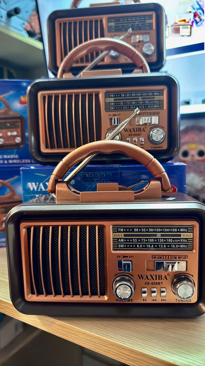 ---GIỚI THIỆU VỀ ĐÀI RADIO FM WAXIBA XB-898BT : -Đài radio Waxiba XB-898BT là dòng sản phẩm phổ biến MẪU MỚI NHẤT NĂM 2025 , mang đến chất lượng ưu việt với mức giá phù hợp. Nhiều người đã tin tưởng và ưa chuộng sản phẩm này... -Đài radio đa năng XB-898BT bắt sóng được 5 băng tần AM, FM và SW. Đặc biệt, sản phẩm được trang bị Công nghệ sóng vượt trội và đèn pin giúp bạn sử dụng dễ dàng trong môi trường thiếu ánh sáng và thuận tiện trong việc điều chỉnh sóng đài... -Với kích thước nhỏ gọn và hình dáng bắt mắt , đài radio FM Waxiba XB-898BT dễ dàng đóng gói và vận chuyển đi xa mà không chiếm quá nhiều diện tích trong balo hay vali. -Âm nhạc đỉnh cao với Đài Radio Waxiba XB-898BT 1.Đài fm Waxiba XB 898BT:Giải pháp hoàn hảo cho người yêu nhạc Bạn yêu nhạc và luôn tìm kiếm một thiết bị đa năng để thưởng thức âm nhạc yêu thích của mình? Đài Radio Waxiba XB-898BT chính là lựa chọn hoàn hảo dành cho bạn! Với thiết kế cao cấp và tích hợp nhiều tính năng độc đáo, sản phẩm này hứa hẹn mang đến trải nghiệm nghe nhạc tuyệt vời, đồng thời đáp ứng mọi nhu cầu giải trí của bạn.VỚI âm thanh sống động mang lại cho bạn cảm giác tuyệt vời khi nghe bản nhạc mình yêu thích 2.Đài nghe nhạc Waxiba-898BT Đa dạng kết nối và pin sạc tiện lợi Bộ sản phẩm của đài radio nghe nhạc Waxiba XB-898BT bao gồm hai thành phần chính, một Pin Sạc 18650 và một dây sạc. Đây là một sự kết hợp đáng chú ý và hữu ích để đảm bảo bạn luôn sẵn sàng thưởng thức âm nhạc yêu thích của mình mọi lúc, mọi nơi. Pin Sạc 18650 là một giải pháp hiệu quả cho việc cung cấp năng lượng cho đài radio. Với khả năng lưu trữ lớn và tuổi thọ tốt, pin này giúp bạn dễ dàng sạc lại để sẵn sàng sử dụng. Bạn không cần lo lắng về việc hết pin giữa chừng, mà chỉ cần sạc nhanh chóng và tiếp tục thưởng thức âm nhạc vui vẻ. ---Thông số kỹ thuật: