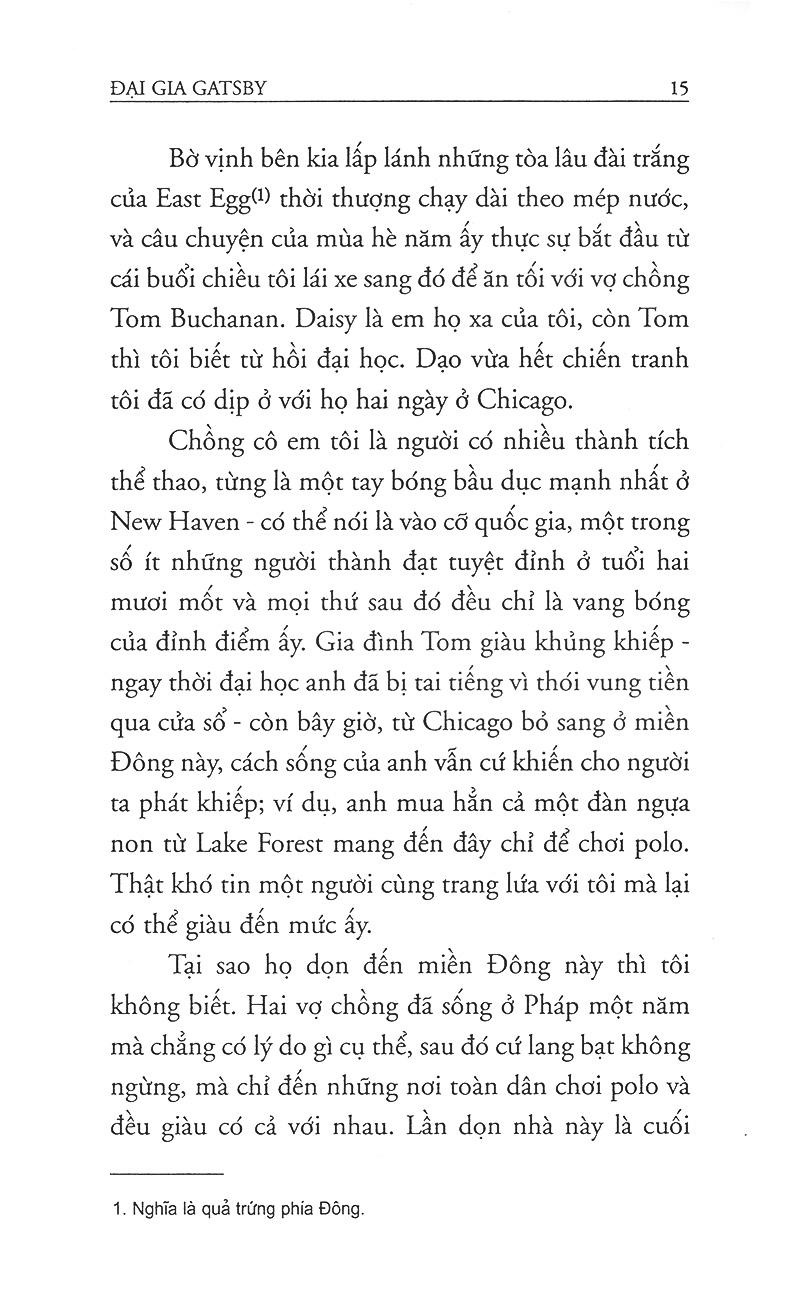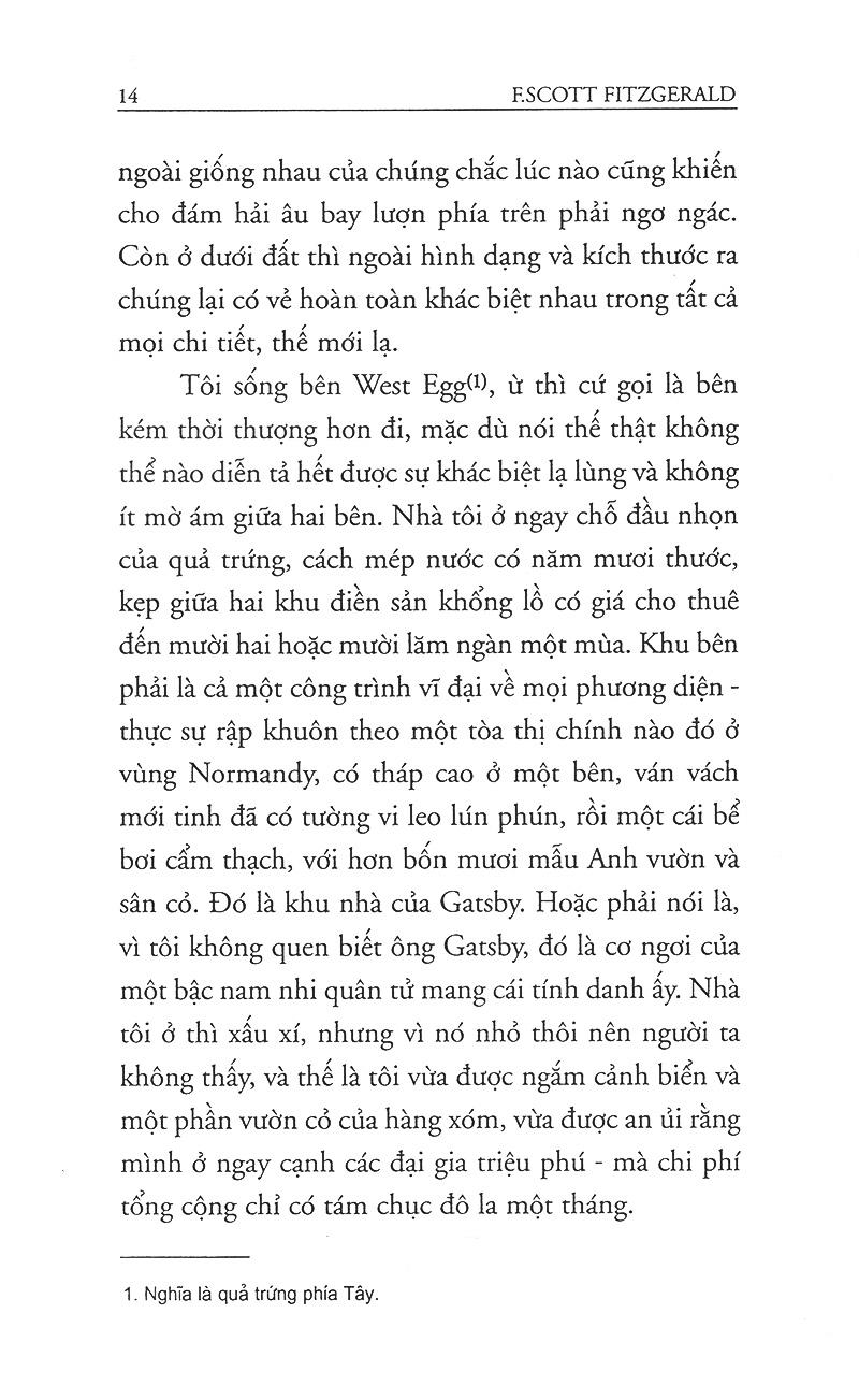 Phất lên nhanh chóng từ chỗ "hàn vi", Gastby, nhân vật chính của câu chuyện, những tưởng sẽ có được tất cả - tiền bạc, quyền lực, và sau rốt là tình yêu -, nhưng rồi cái ảo tưởng tình yêu đó tan vỡ thật đau đớn, theo sau là một kết cục kinh hoàng của Gastby.
