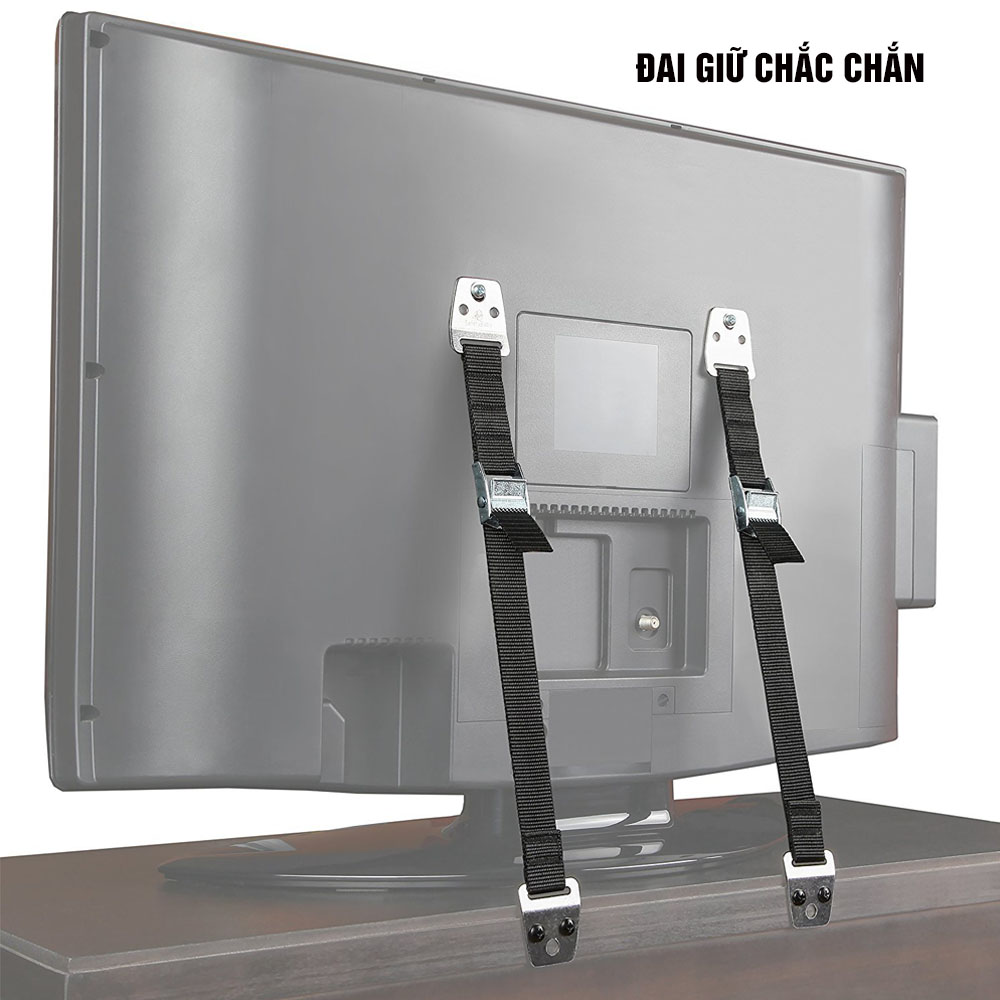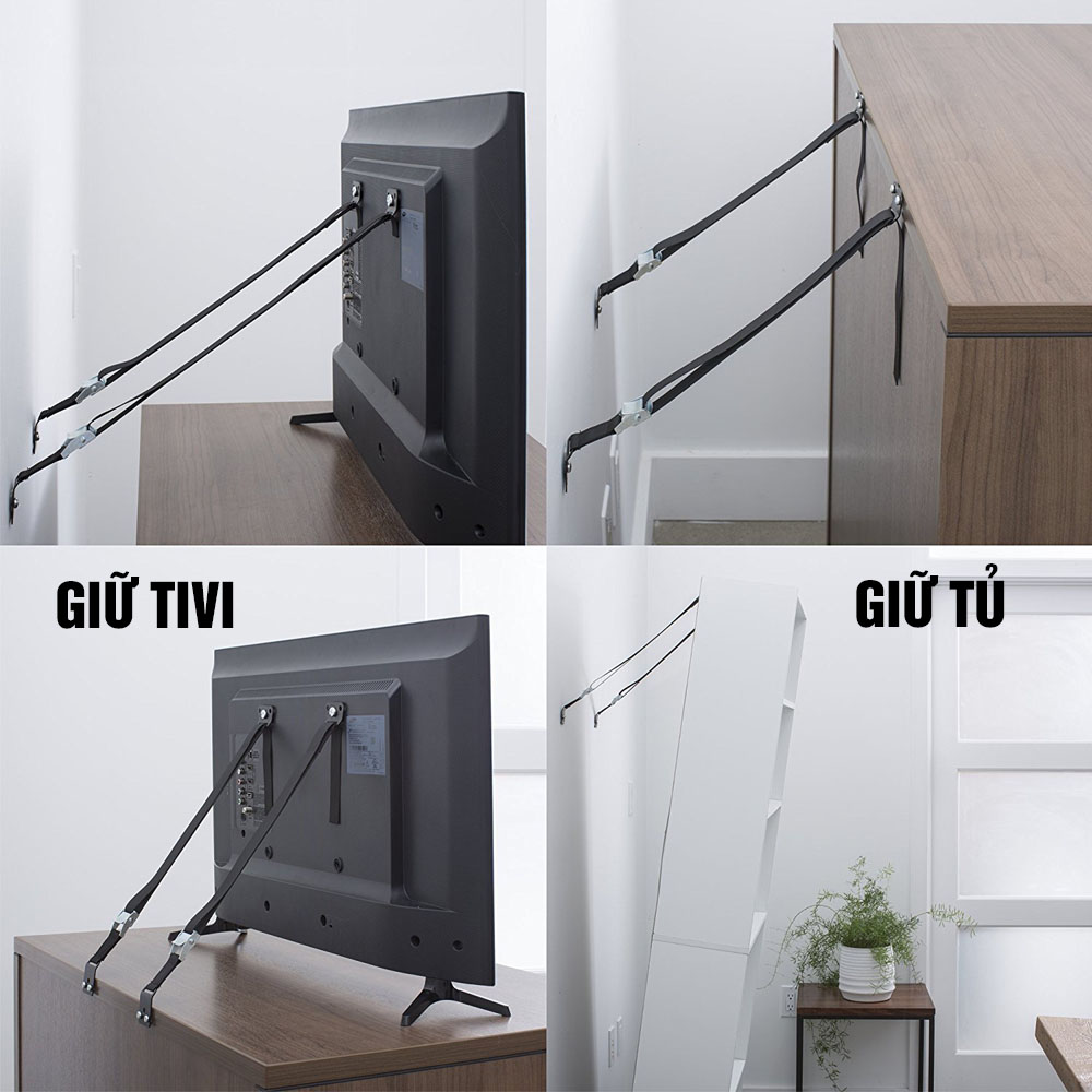 Công dụng: Dây đai sẽ cố định tivi, tủ, các hộ đồ cao ngăn cho chúng lật đổ, không gây ra thiệt hại, thương tích nghiêm trọng.