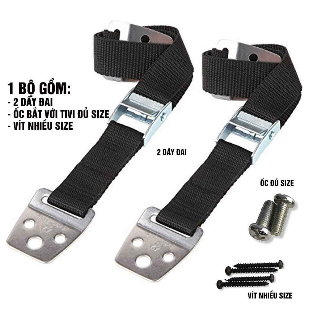 1 bộ gồm: 2 dây đai, ốc bắt vào tivi nhiều size, vít nhiều size
