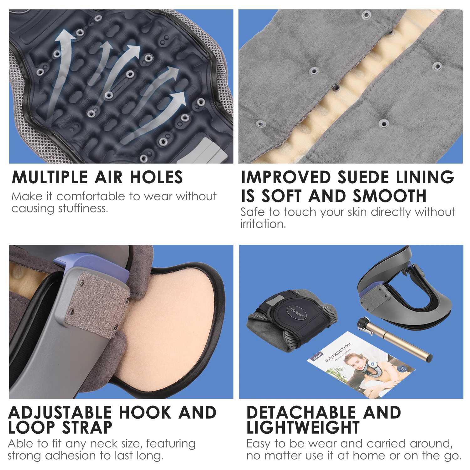 Đai hơi cổ hỗ trợ kéo giãn cổ Leamai C03 Công dụng đai hơi kéo giãn và hỗ trợ điều trị thoát vị cột sống cổ Kéo giãn cột sống cổ để giảm và hỗ