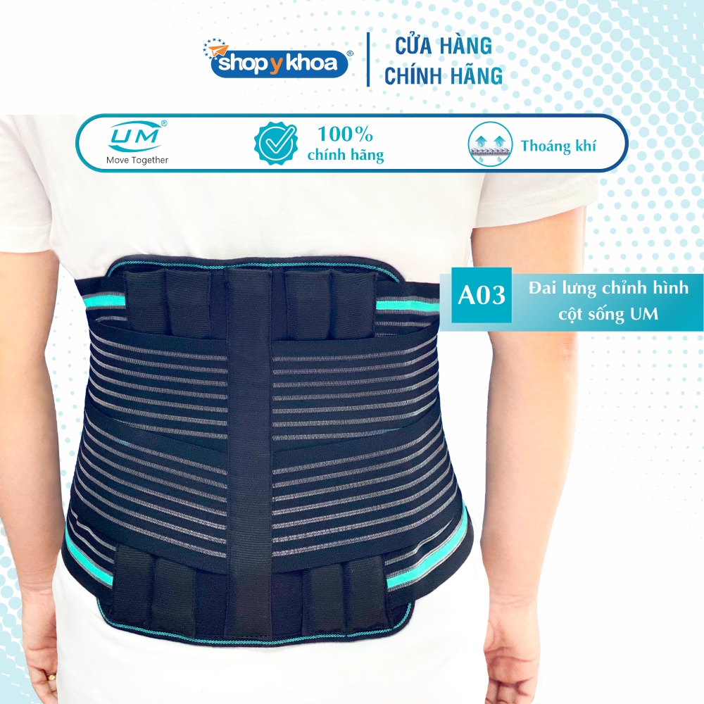 Đai lưng chỉnh hình cột sống UM (A03) có thiết kế hình dạng giải phẫu kèm thanh nẹp cao cấp, đảm bảo tư thế hoàn hảo và bất động hiệu quả. CHỈ ĐỊNH - Đau