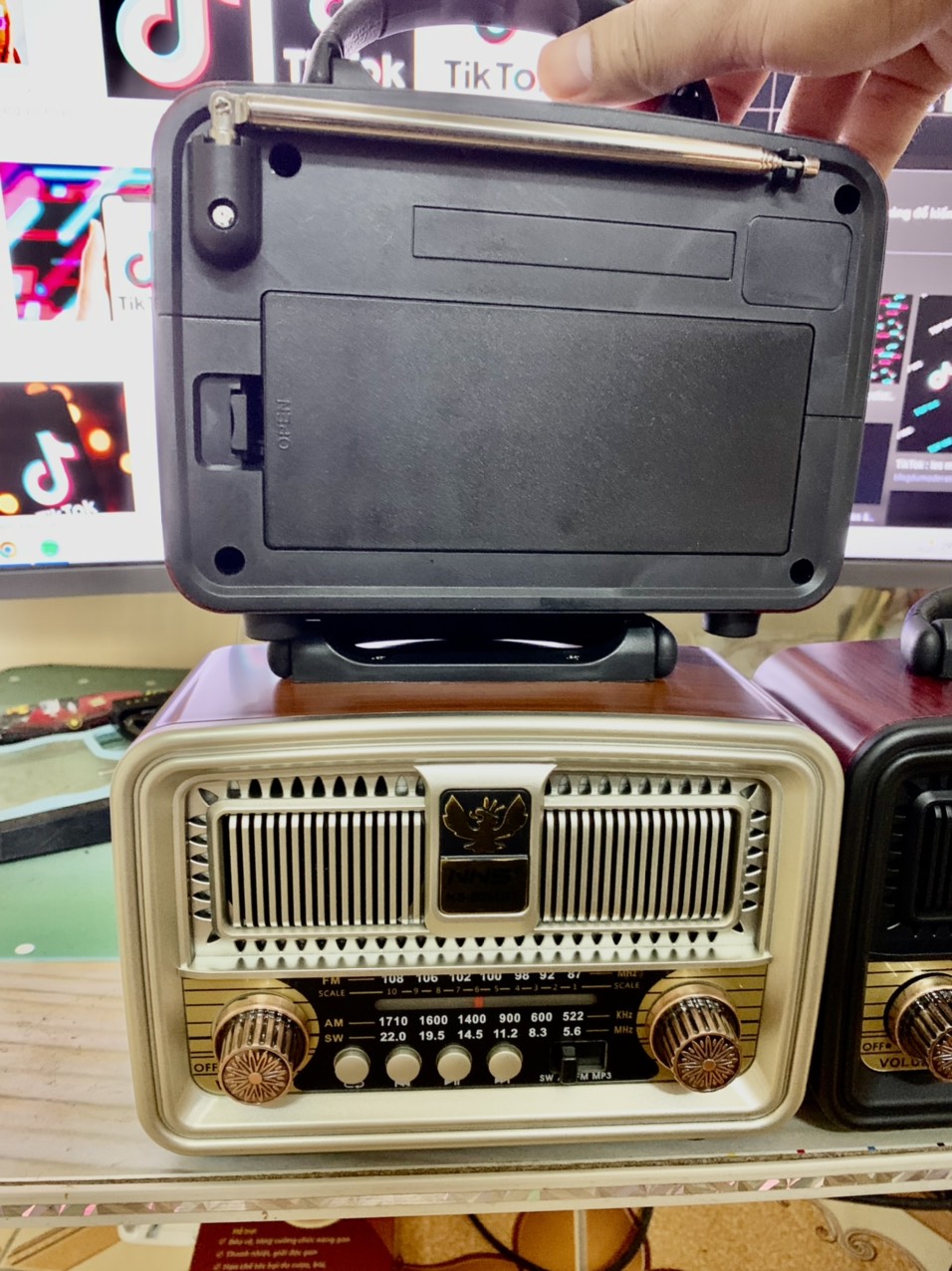 Đài radio NNS 8091BT pin 6 tiếng giá 234K. Kết nối bluetooth, FM, AM, SW có cổng usb, thẻ nhớ