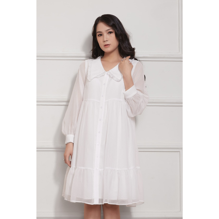 ღ THÔNG TIN SẢN PHẨM: Tên sản phẩm: Đầm trắng cổ sơ mi tay dài Chất liệu: Chất tafta Chi tiết sản phẩm: không lót, không túi Thông số size: S, M,