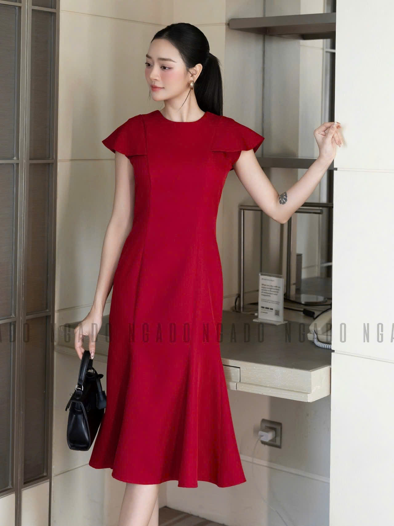 ✨Đầm đỏ đuôi cá ngắn tay NGADO , đầm nữ , Đầm dự tiệc sang chảnh