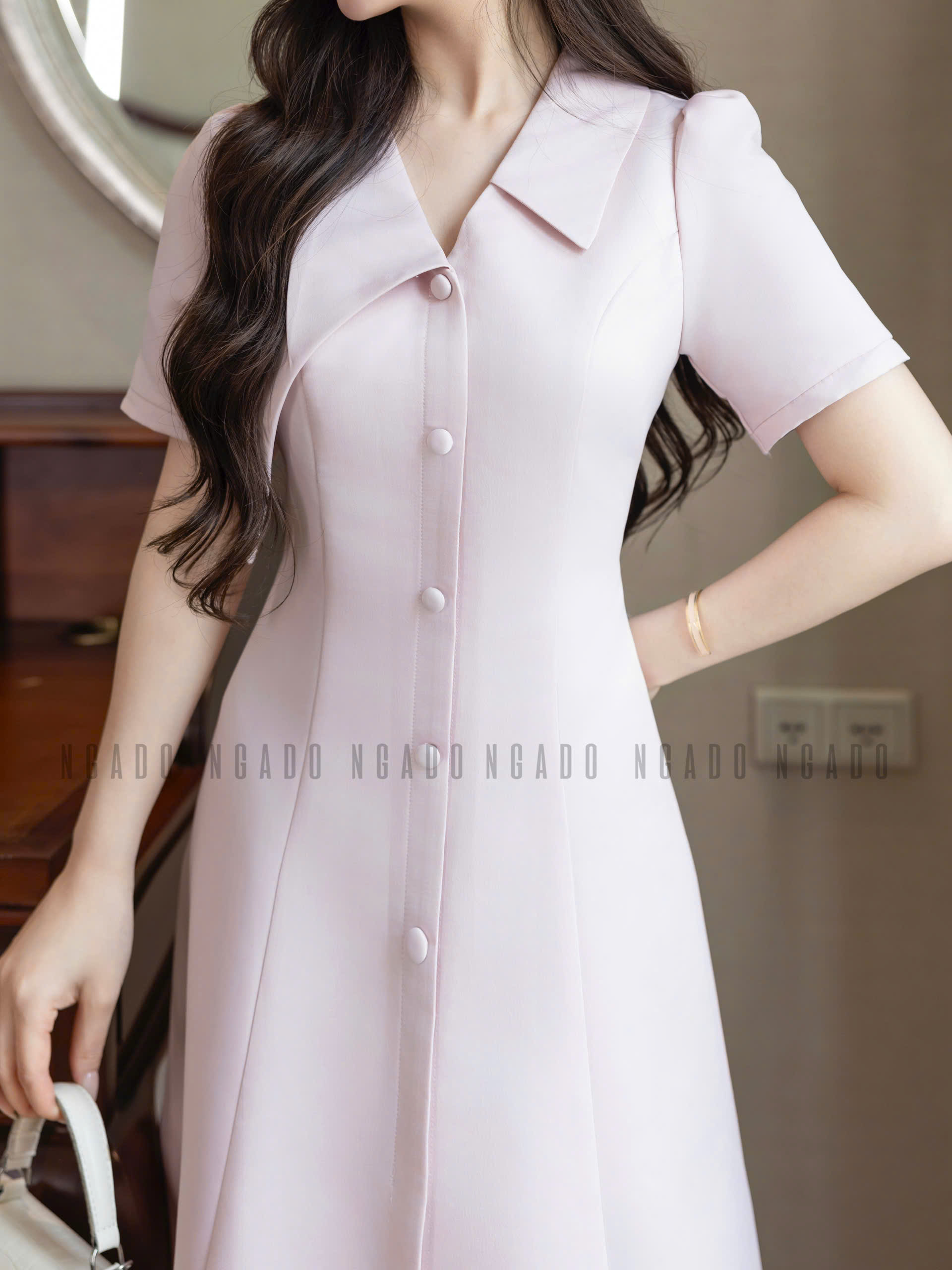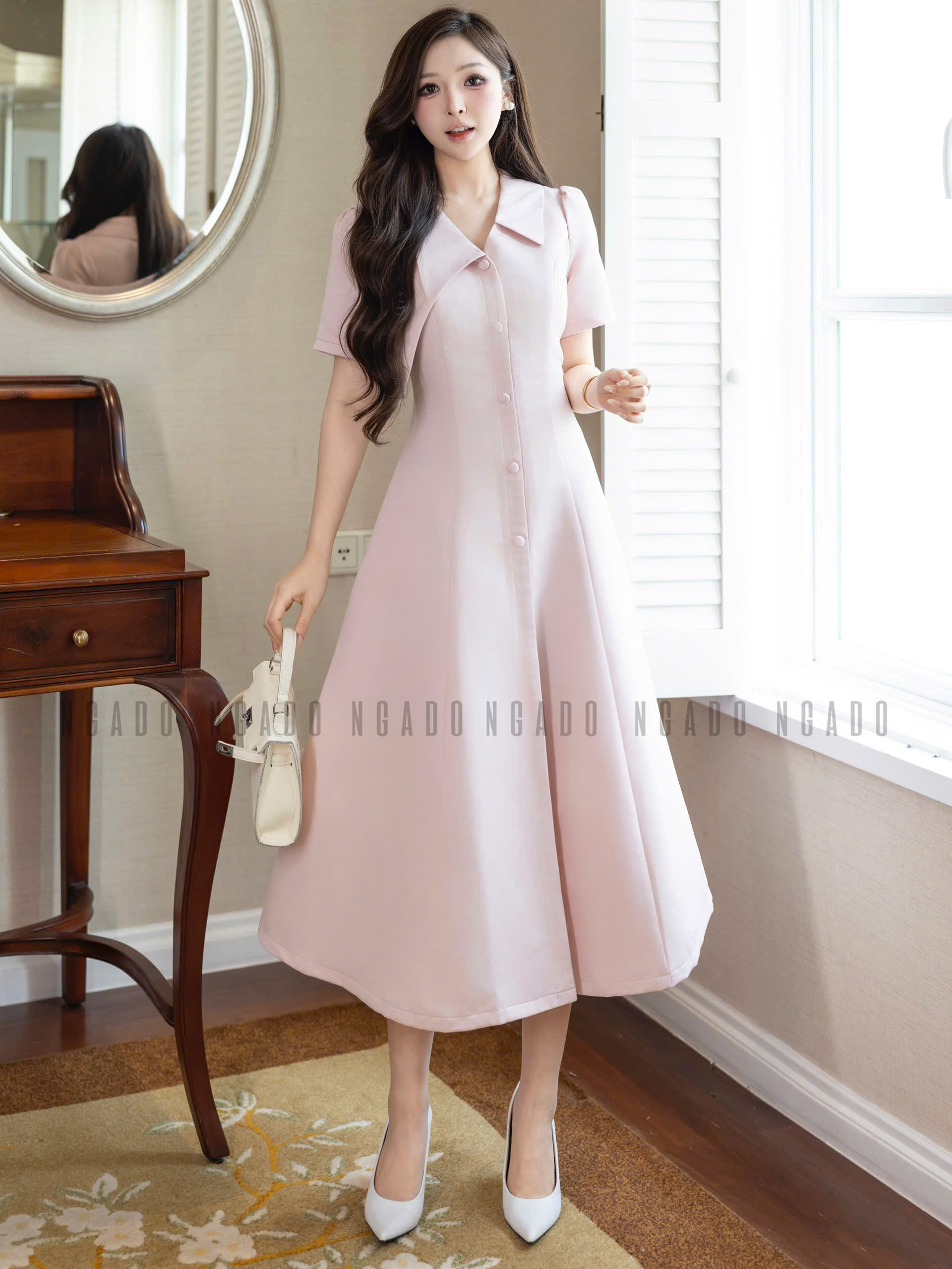 ✨Đầm hồng cổ vest NGADO , đầm công sở , dự tiệc