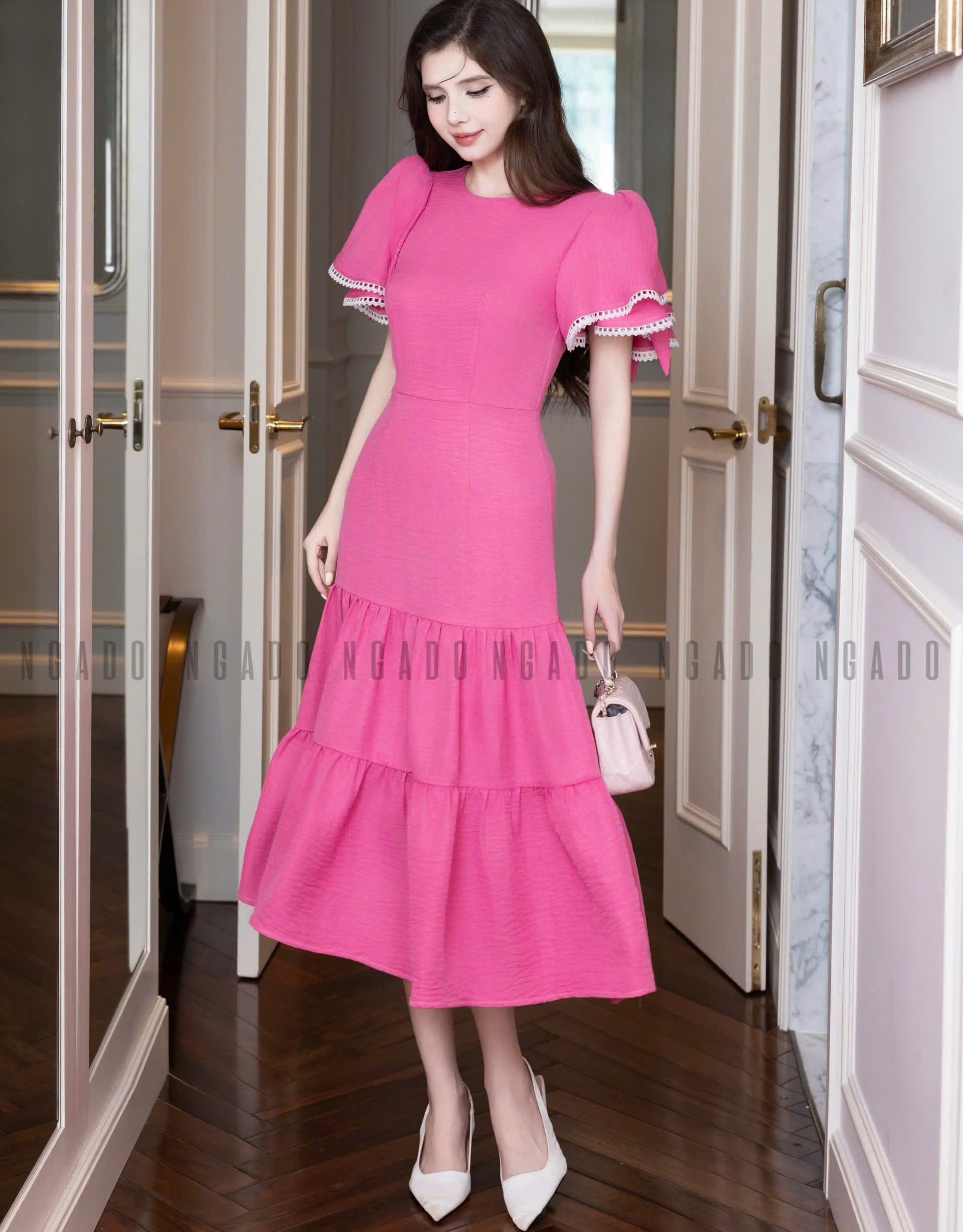 ✨Đầm hồng sen phối ren NGADO , đầm dài , đầm Nữ , đầm công sở , dự tiệc