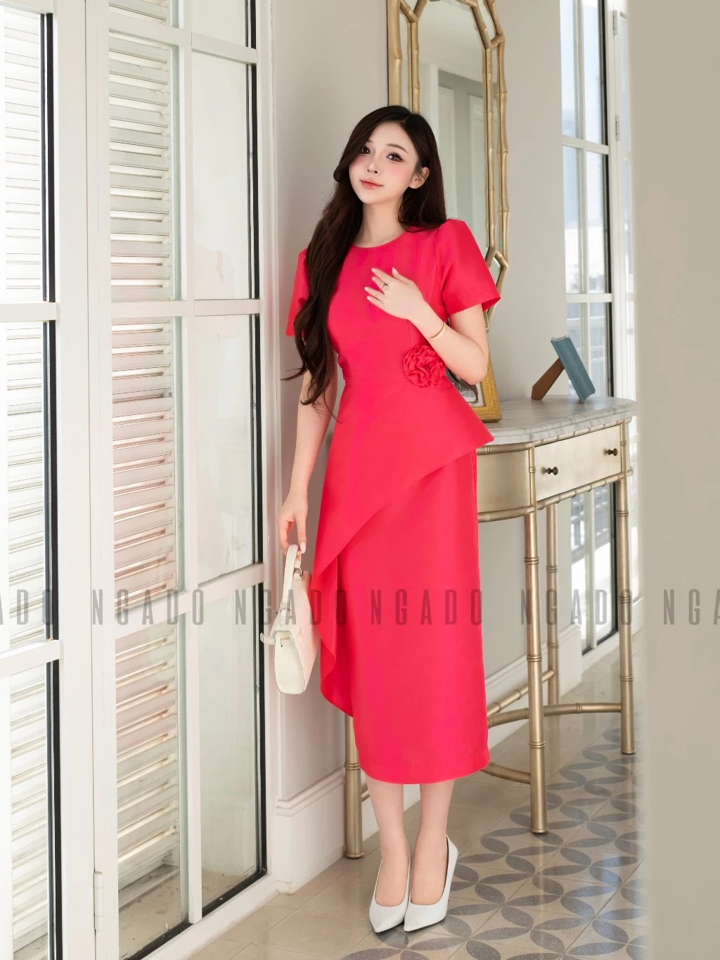 ✨Đầm hồng sen tay loe NGADO , đầm bút chì , đầm dự tiệc , đầm công sở
