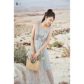 ✨Đầm maxi hoa tím, bèo tay Tri'C Luxury A25221 Xanh
