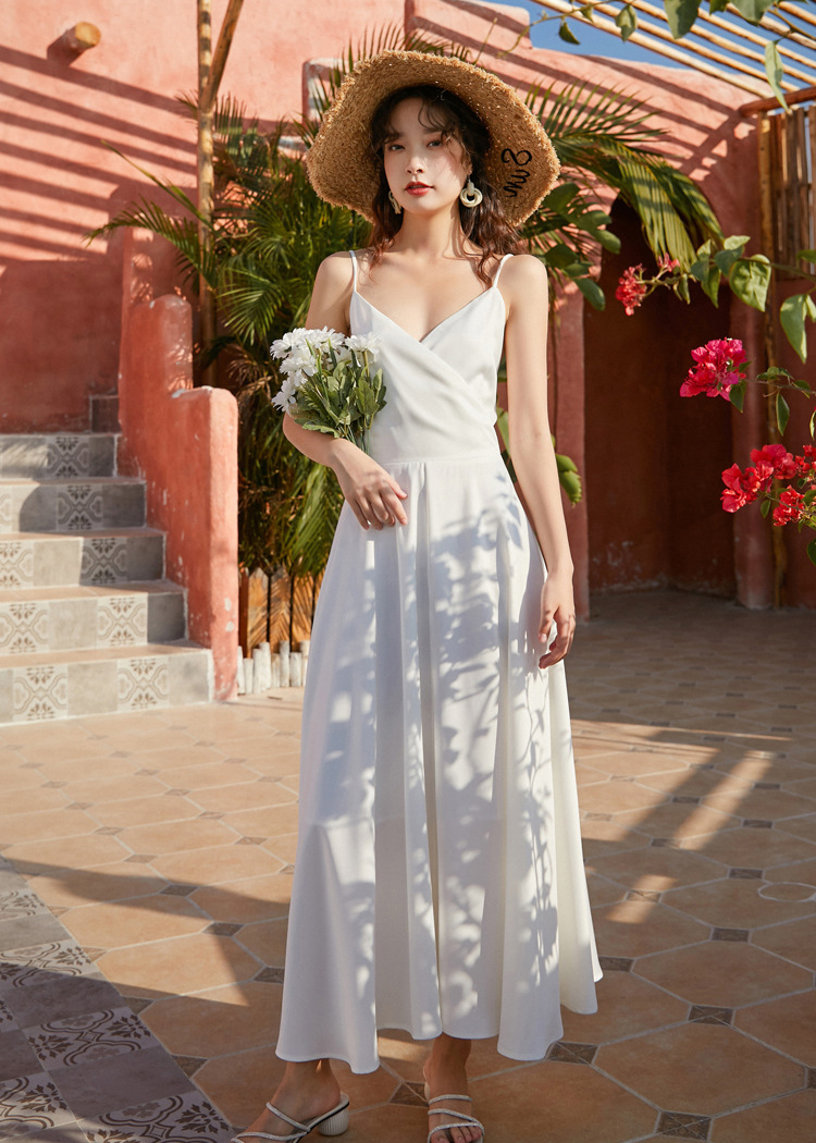 ✨Đầm maxi lụa trắng siêu sang, dáng xòe dài thướt tha, váy maxi 2 dây, lưng trần đan nơ quyến rũ, chất lụa mềm | MX050