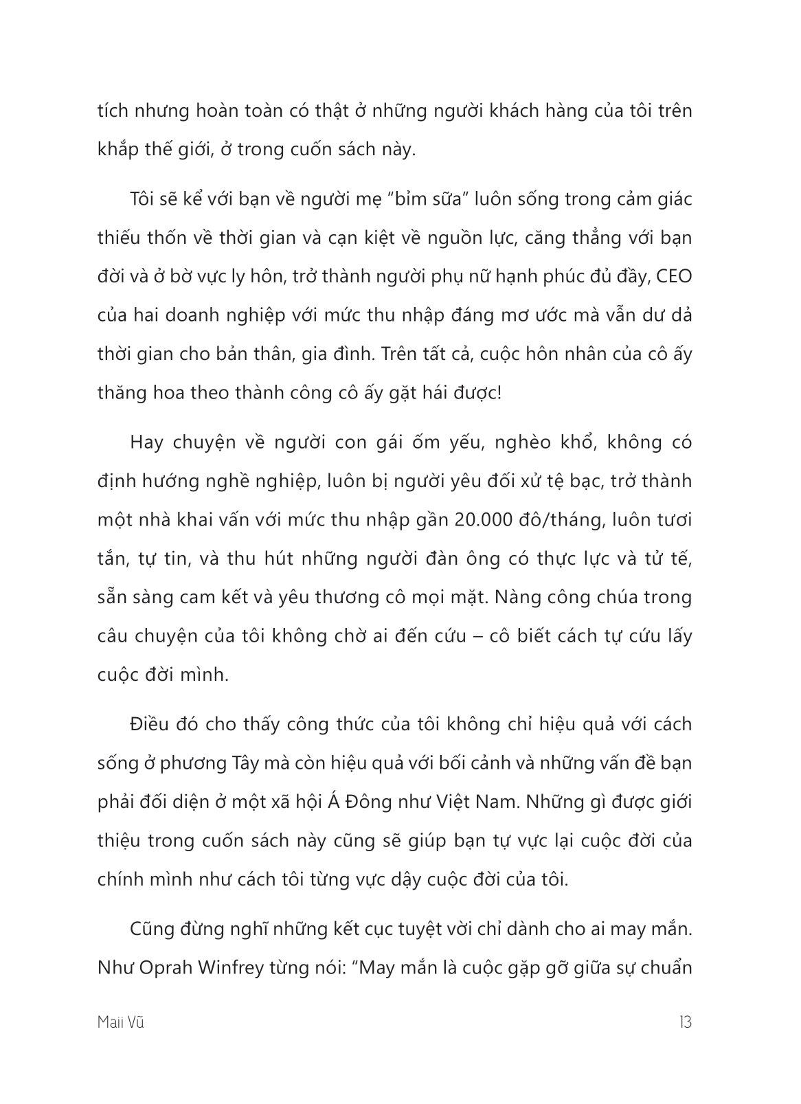 Dám Sống Với Ước Mơ Khi bạn cầm cuốn sách này trên tay thì đó là dấu hiệu đã đến lúc bạn cần nghiêm túc xem xét lại về những gì m.ình luôn thầm ao ước: sự tự do, sự nghiệp, tiền bạc, tình yêu, thời gian, hạnh phúc gia đình hay bất cứ khía cạnh nào khác. Dám sống với ước mơ không phải là một cuốn sách truyền động lực đơn thuần mà là một cuốn sách “hướng dẫn sử dụng cuộc đời”song hành dài hạn cùng bạn. Những công cụ trong sách đều đơn giản và tinh gọn, để ngay cả những người phụ nữ đã có gia đình với nhiều mối bận tâm vẫn có thể thực hành chạm tới những ước mơ đầu tiên và cả những ước mơ lớn hơn sau đó – thậm chí là những ước mơ bạn chưa từng tưởng tượng ra!