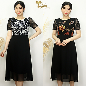 ✨Đầm trung niên bigsize - Đầm xòe A voan hoa tay ren TIFALU900