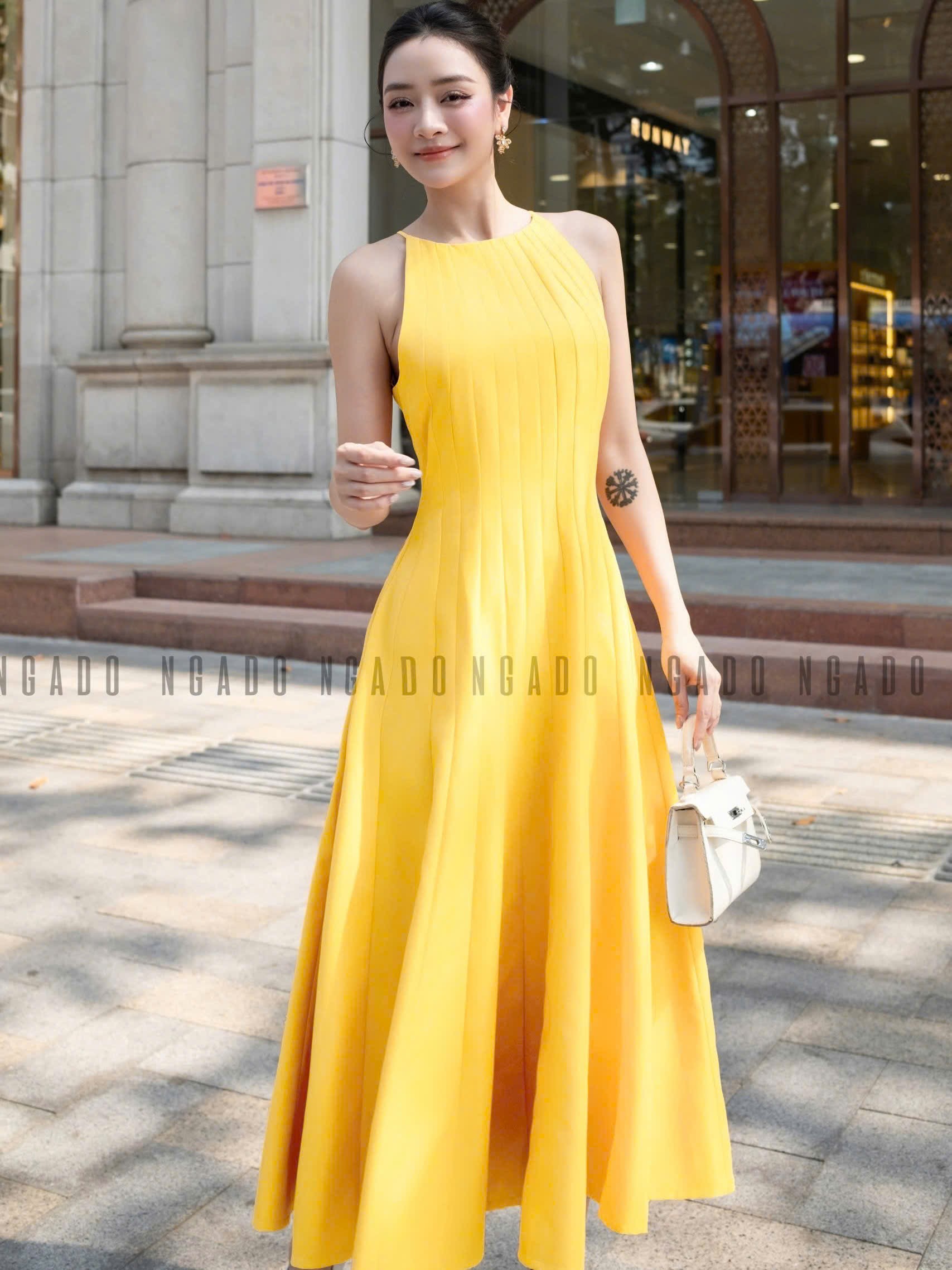 ✨Đầm vàng chanh cổ yếm NGADO , đầm cổ yếm , đầm kiểu Nữ