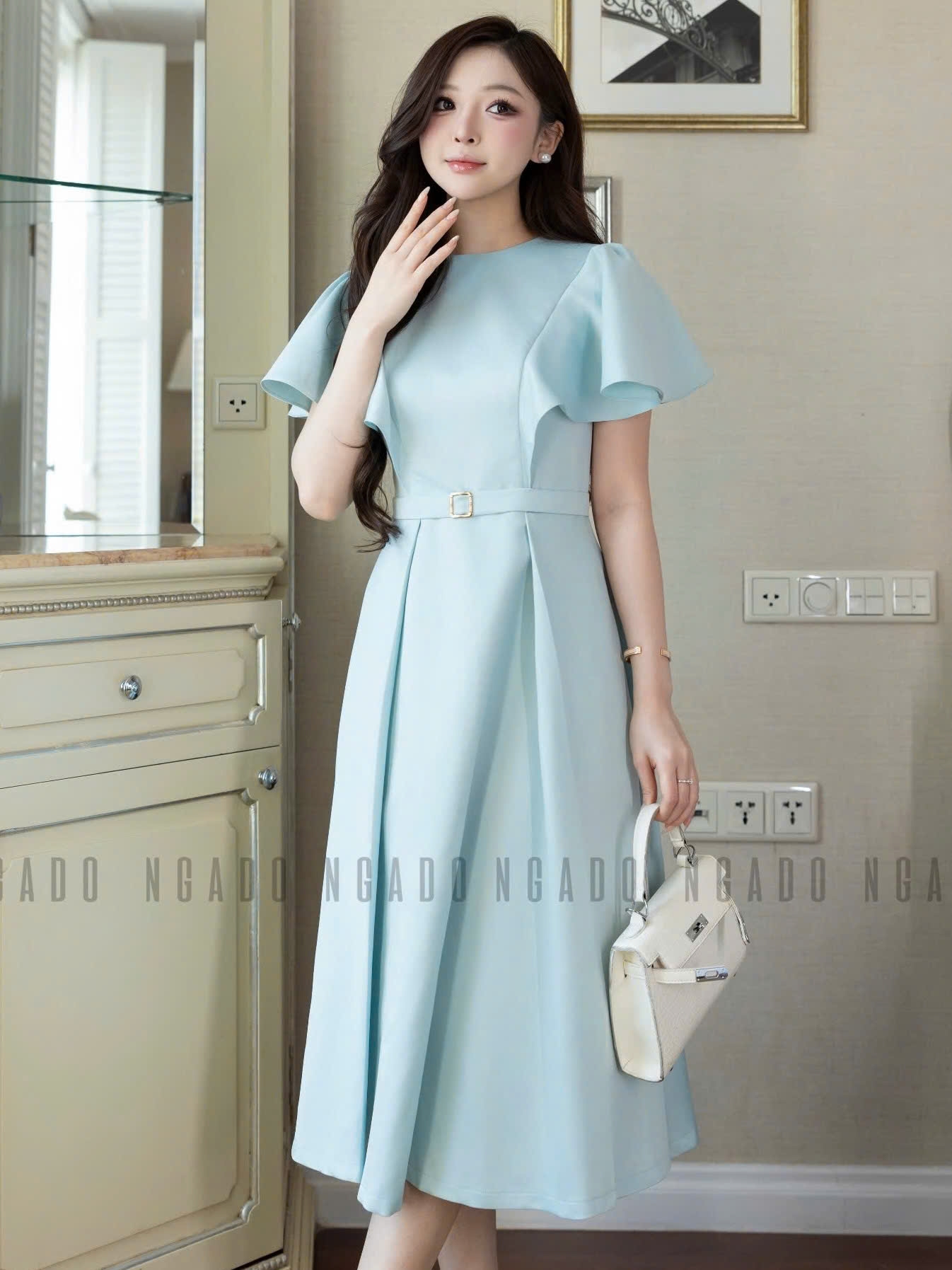 ✨Đầm xanh mint cổ tròn NGADO , đầm dài , đầm dự tiệc , công sở