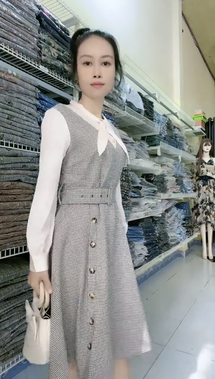 [Zonbig.com] - Đầm Váy Caro Cổ Sơ Mi Thanh Lịch