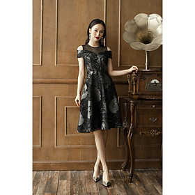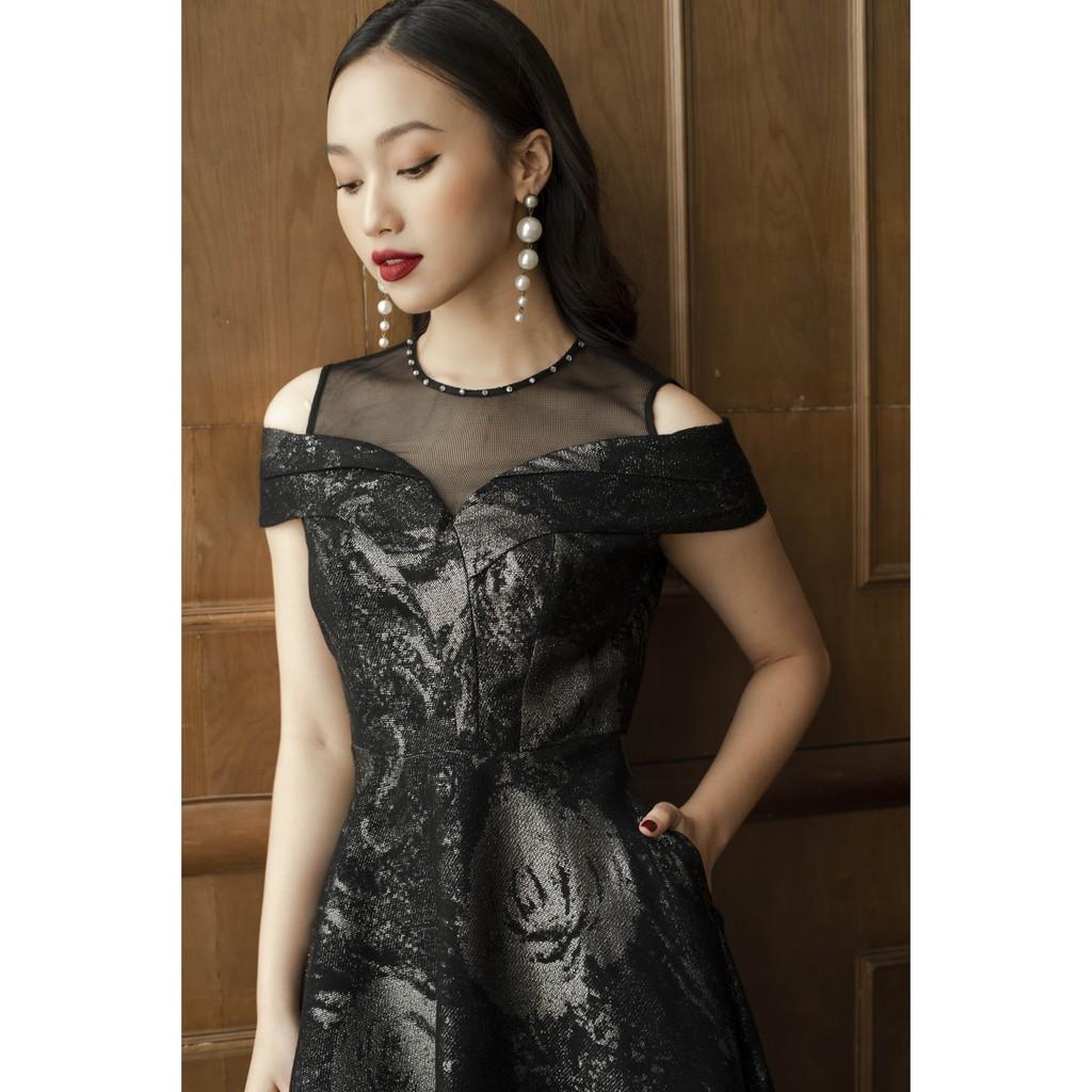 ✨Đầm xòe Tri'C Luxury phối lưới hở vai Đen L030220