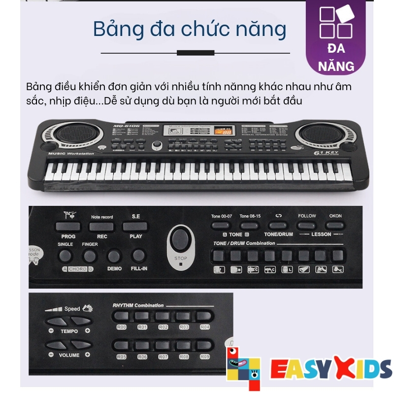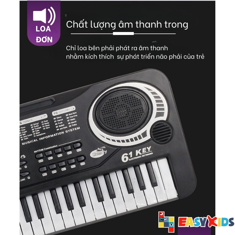 Đàn Organ Đàn Piano Điện Tử Đồ Chơi Cho Bé 61 Phím Sạc Điện không chỉ là một đồ chơi giải trí, mà còn có tính năng giáo dục. Bé có thể học cách nhận biết âm thanh, phân biệt các nút và nhịp điệu âm nhạc. Đồng thời, sản phẩm còn khuyến khích phát triển tư duy trực quan và tăng cường khả năng tập trung và lắng nghe.