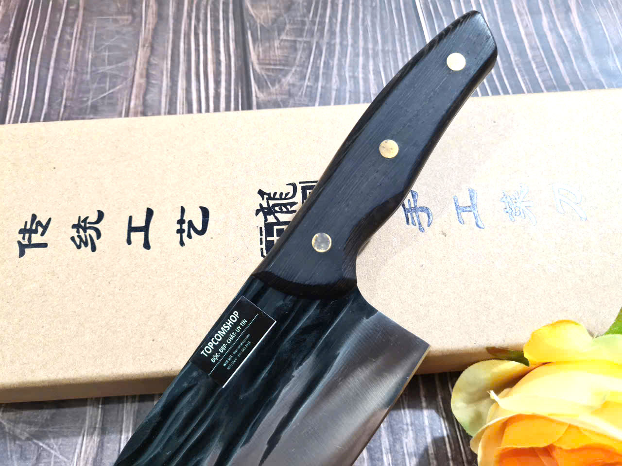 TỔNG DÀI : 32cm, LƯỠI: 19cm,RỘNG : 7cm, dày: 3mm, CHẤT liệu lưỡi: 5Cr15MOV (thép 5 crom 15 molypden vanadi) Chất liệu CÁN: gỗ Cánh gà, NẶNG : 3.5 lạng