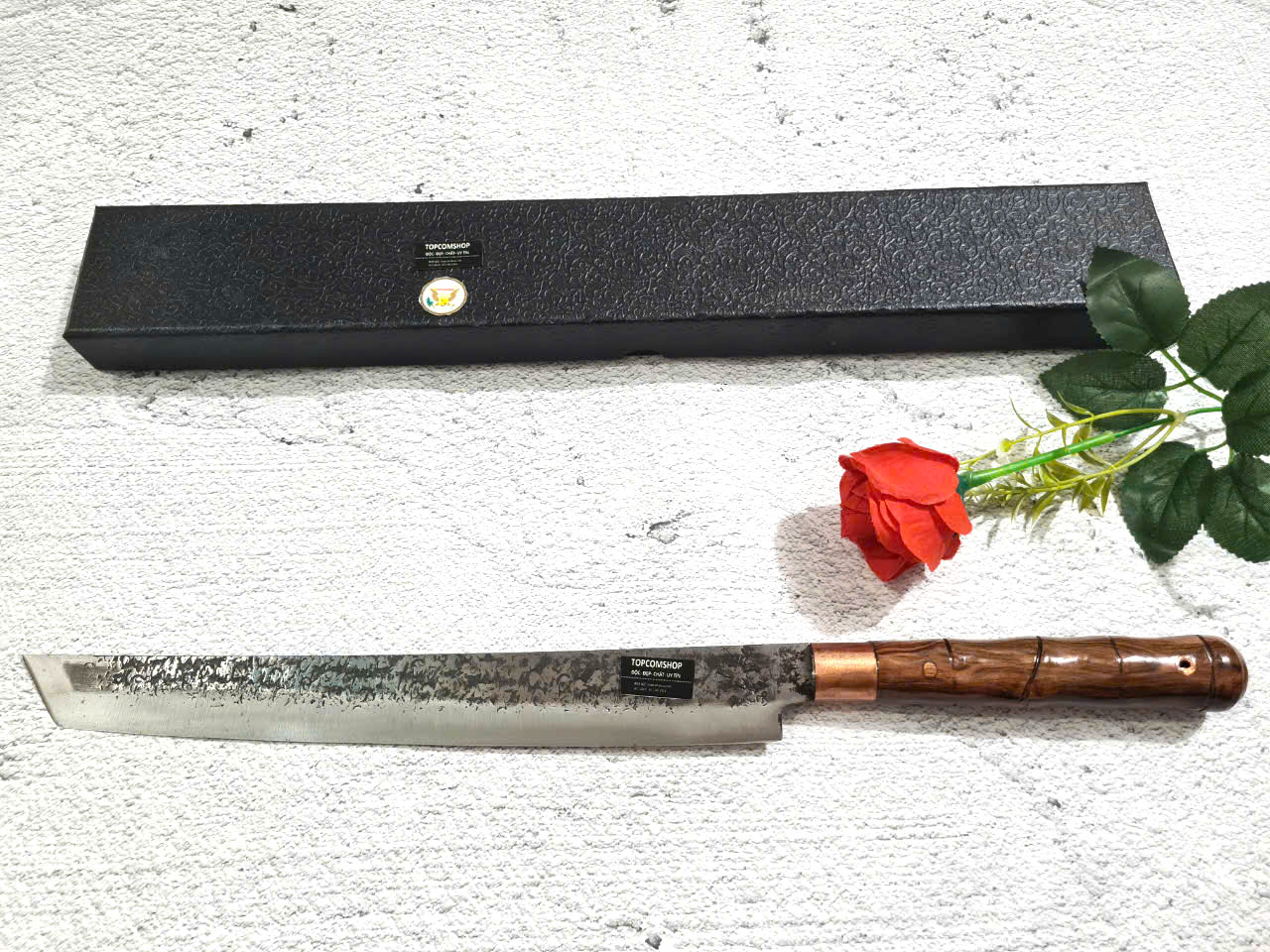 **** DAO BẾP SASHIMI MUĨ VÁT MÃ N53 : TỔNG DÀI : 45cm, LƯỠI: 30cm,RỘNG : 4cm, dày: 2.5mm, CHẤT liệu lưỡi: thép IFA cao cấp Chất liệu CÁN: gỗ cẩm chỉ, Các phụ kiện ( khâu ) : đồng thau NẶNG : 3 lạng