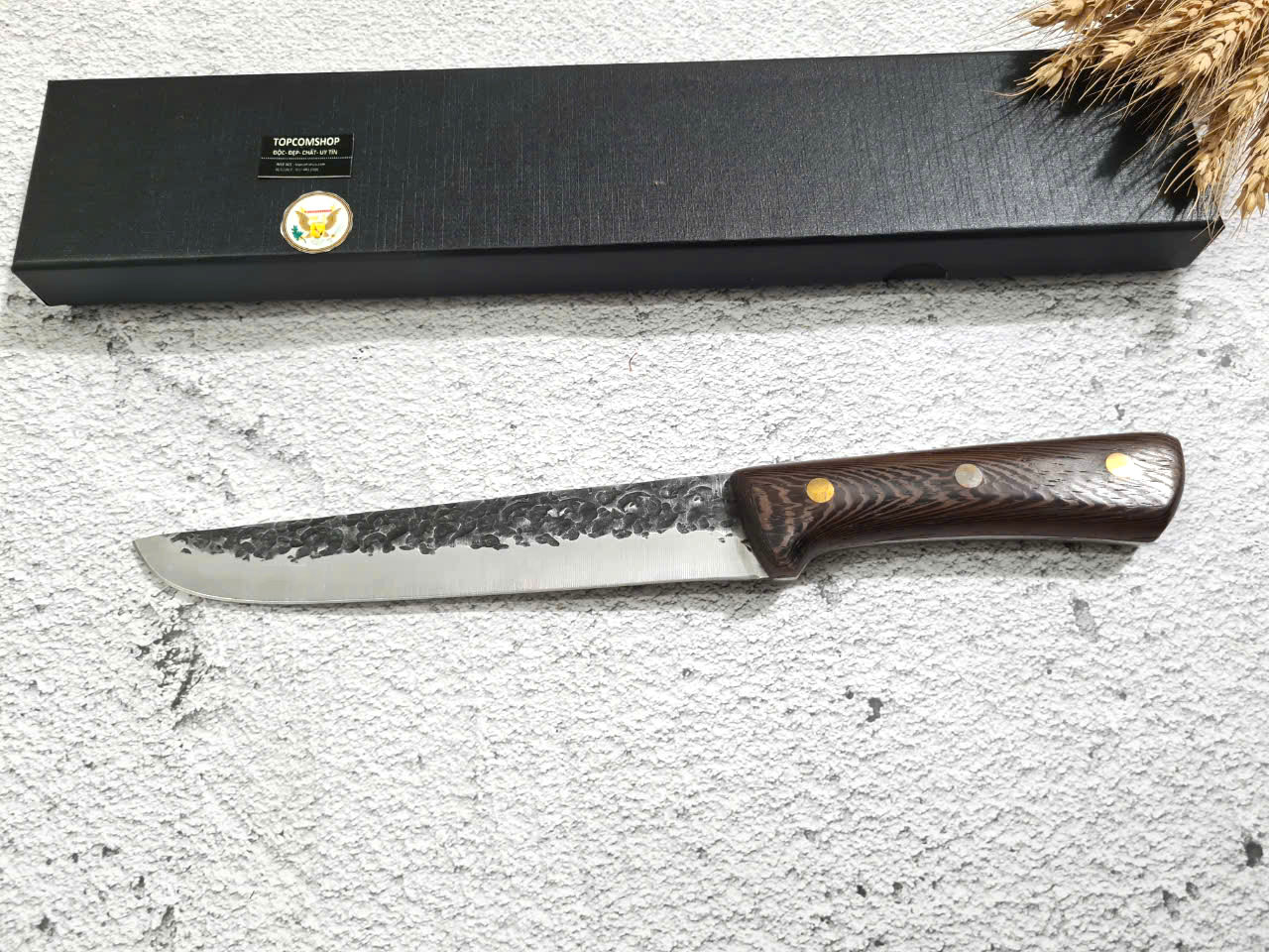 • Chất liệu: Thép Nhật 420J2, độ cứng 53HRC – siêu bền, chống gỉ • Lưỡi dao: Dày 2.5mm, sắc bén, hoàn thiện bằng đá mài nước • Tay cầm: Gỗ Pakka sang trọng, chống