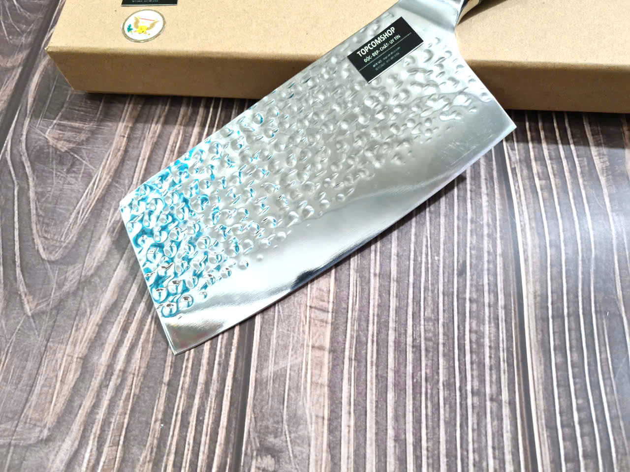 - Chức năng: thái thịt, rau củ quả - Kích thước: Lưỡi: 17cm, cán: 12cm, rộng: 5cm, dầy: 1ly, trọng lượng: 200g - Cán : Gỗ cẩm chỉ, Chốt, Khâu ĐỒNG ĐỎ , keo liên