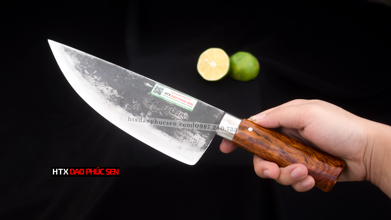 Tên sản phẩm: Dao Phúc Sen, Dao Thái Kiểu 03 Cán Gỗ Cẩm - Chức năng: chuyên thái thịt, rau củ - Chất liệu: 100% thép nhíp ô tô được lựa chọn và kiểm duyệt